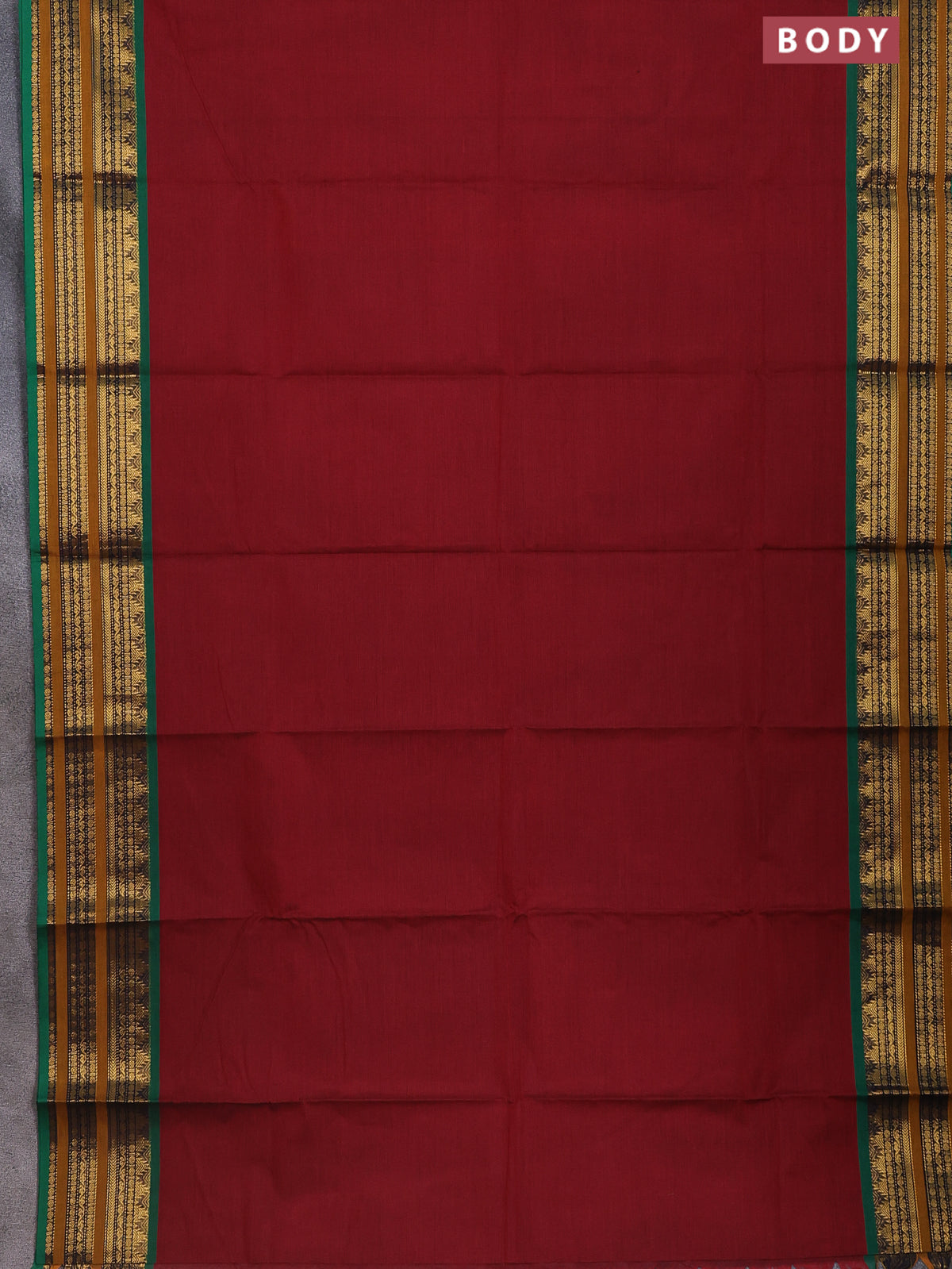Chettinad cotton saree maroon and green with thread woven buttas and zari woven border