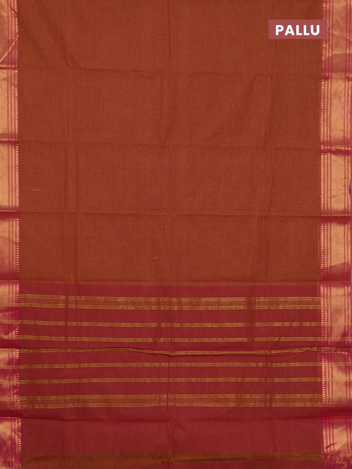 Chettinad cotton saree mustard yellow and pink with allover small checked pattern and zari woven border