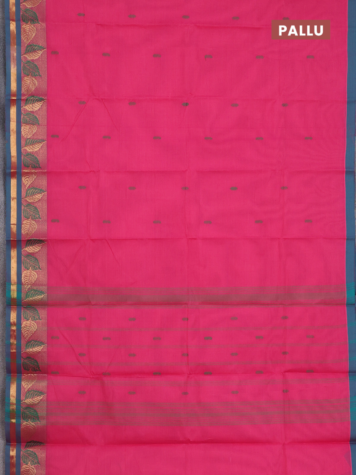 Chettinad cotton saree pink and dual shade of teal green with thread woven buttas and leaf design zari woven border