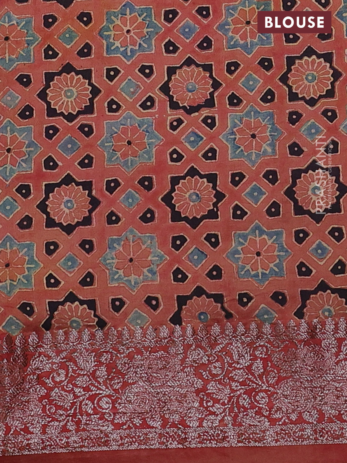Chiniya silk saree dark green and rust shade with plain body and woven border