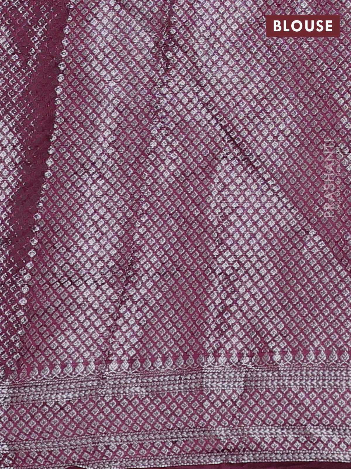 Chiniya silk saree mauve pink with allover silver zari buttas & bandhini prints and silver zari woven border