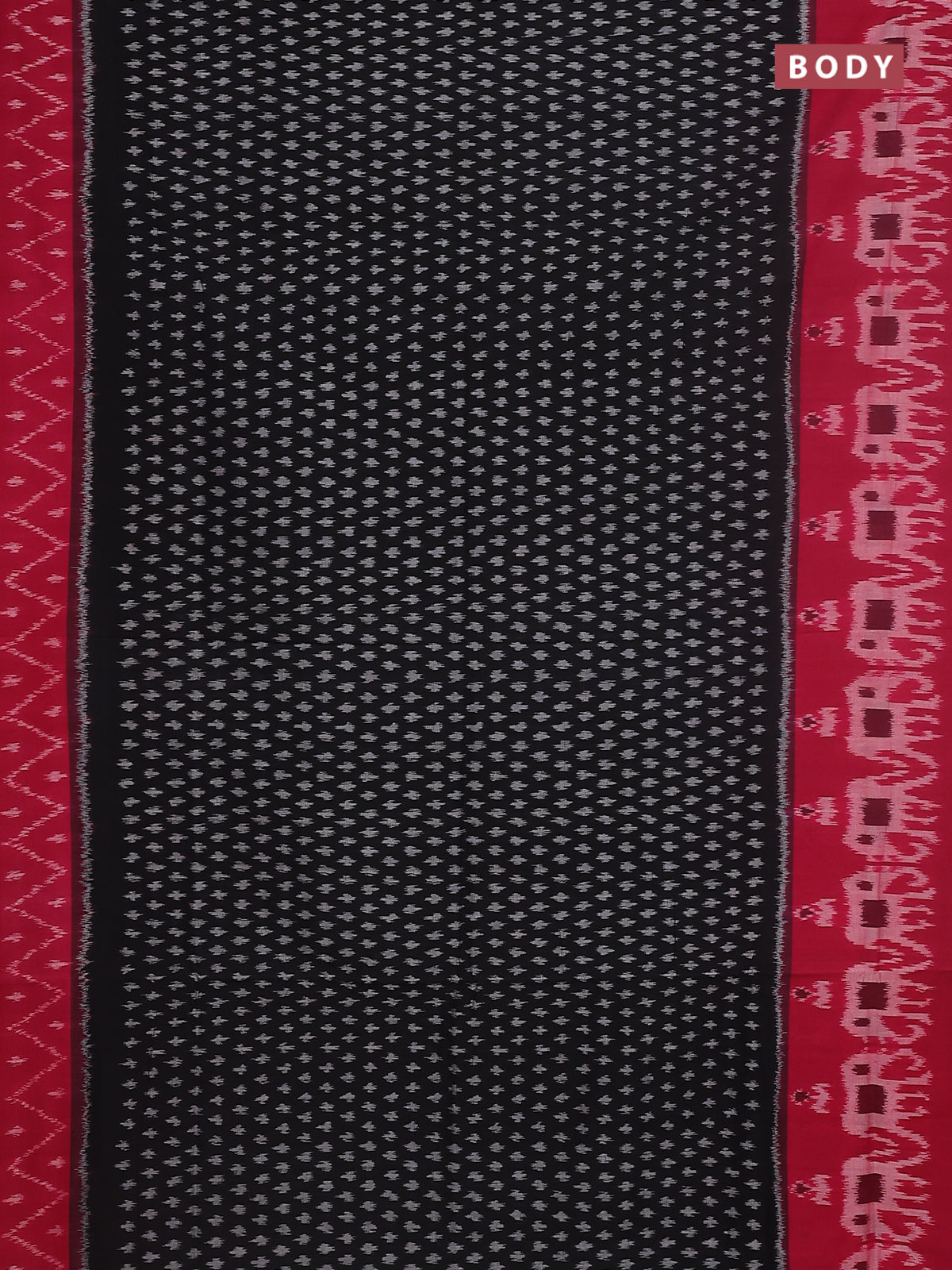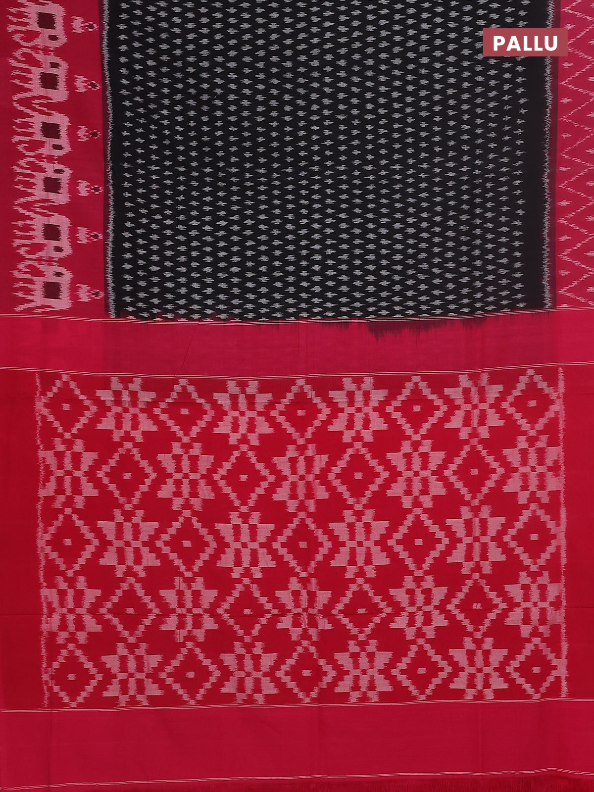 Ikat cotton saree black and pink with allover ikat butta weaves and long ikat border