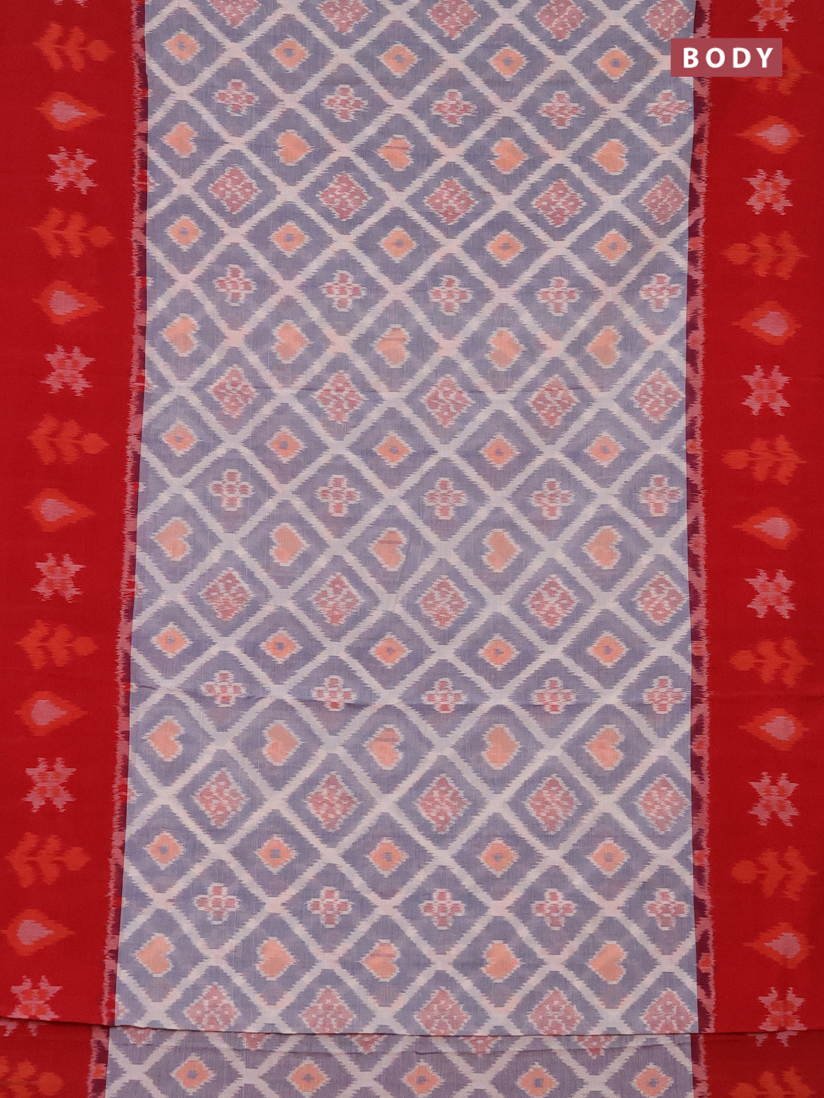 Ikat cotton saree blue shade and red with allover ikat weaves and ikat border