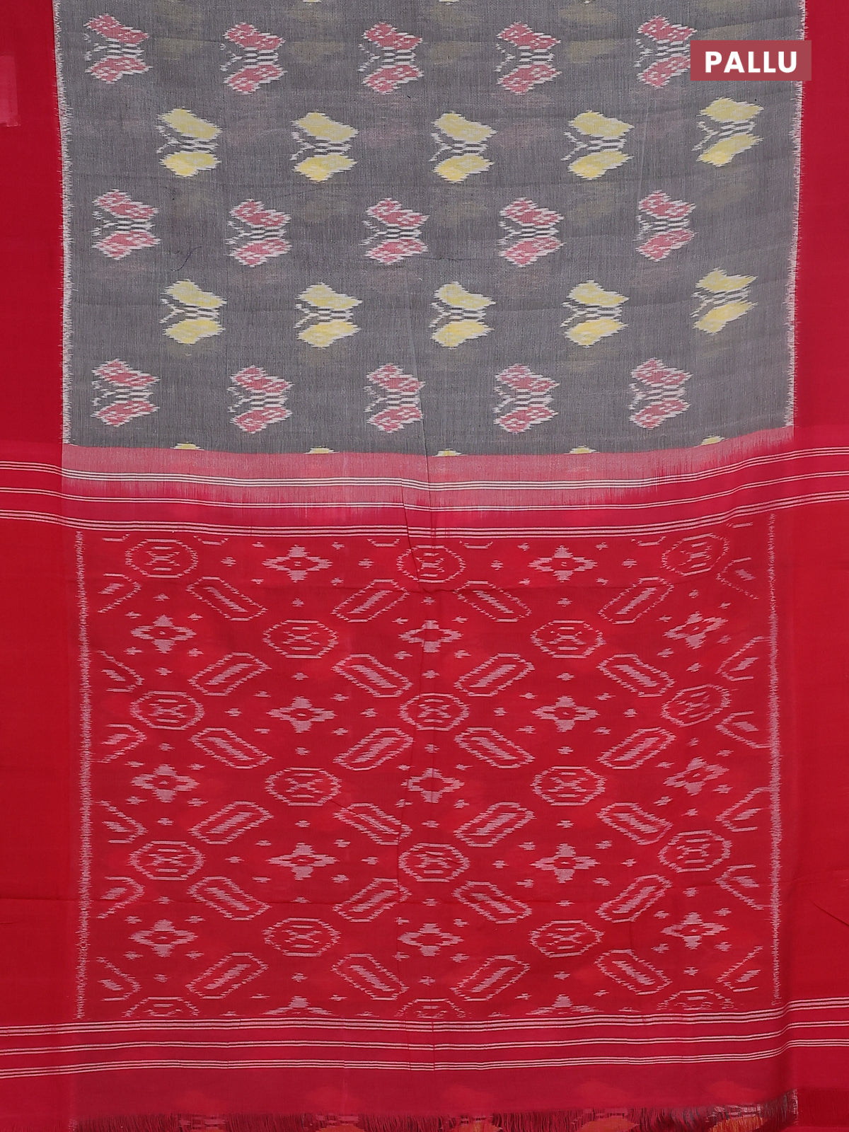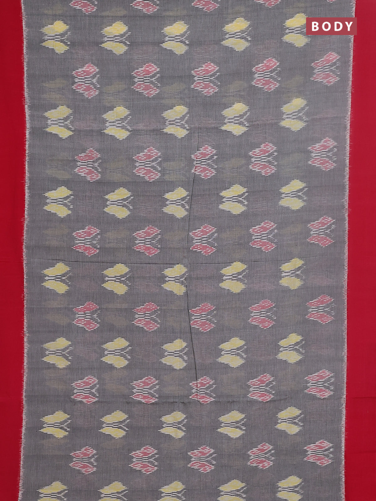 Ikat cotton saree grey and pink with allover ikat butta weaves and simple border