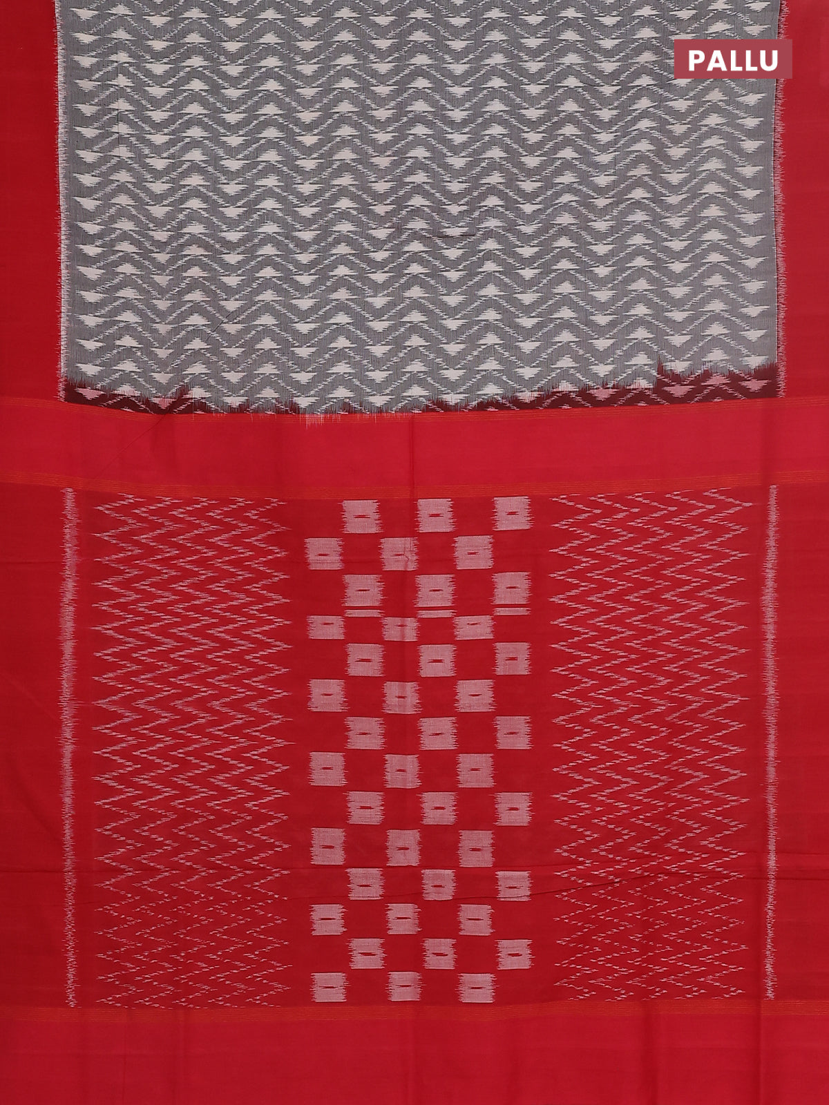Ikat cotton saree grey and red with allover ikat weaves and simple border