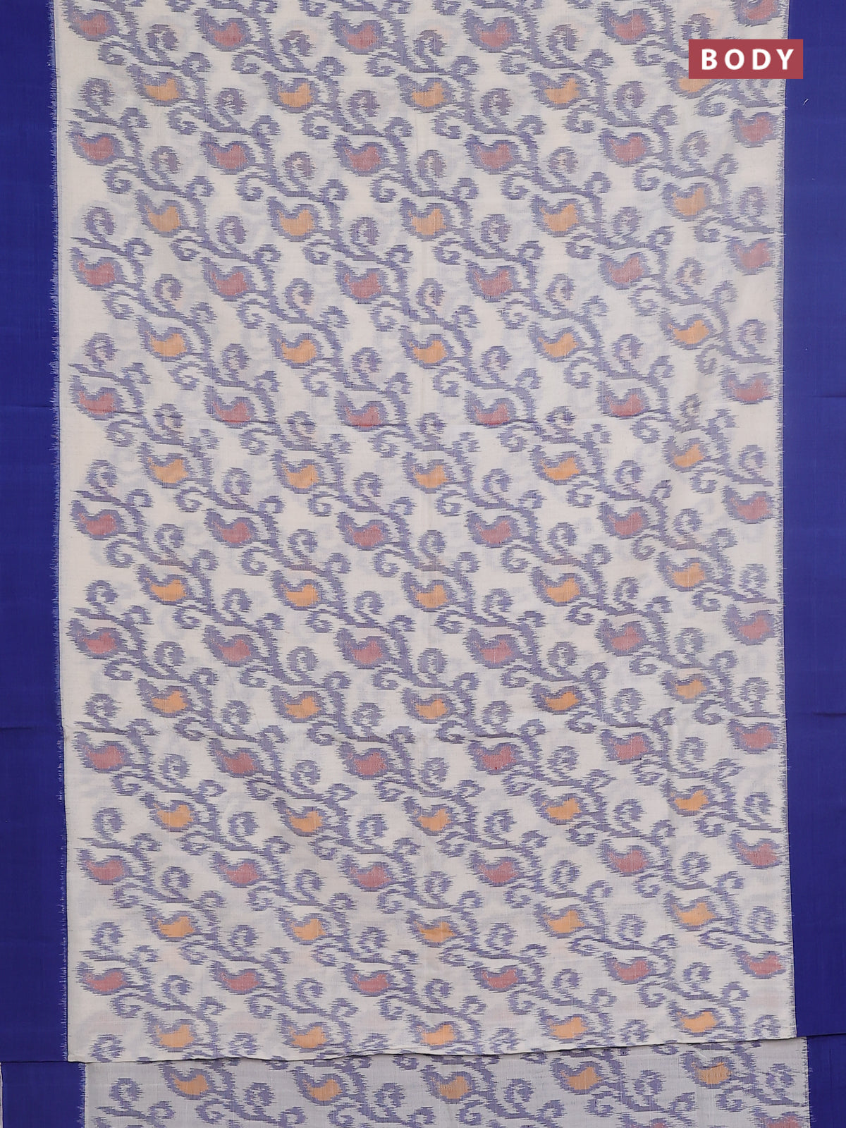 Ikat cotton saree off white and blue with allover ikat weaves and simple border