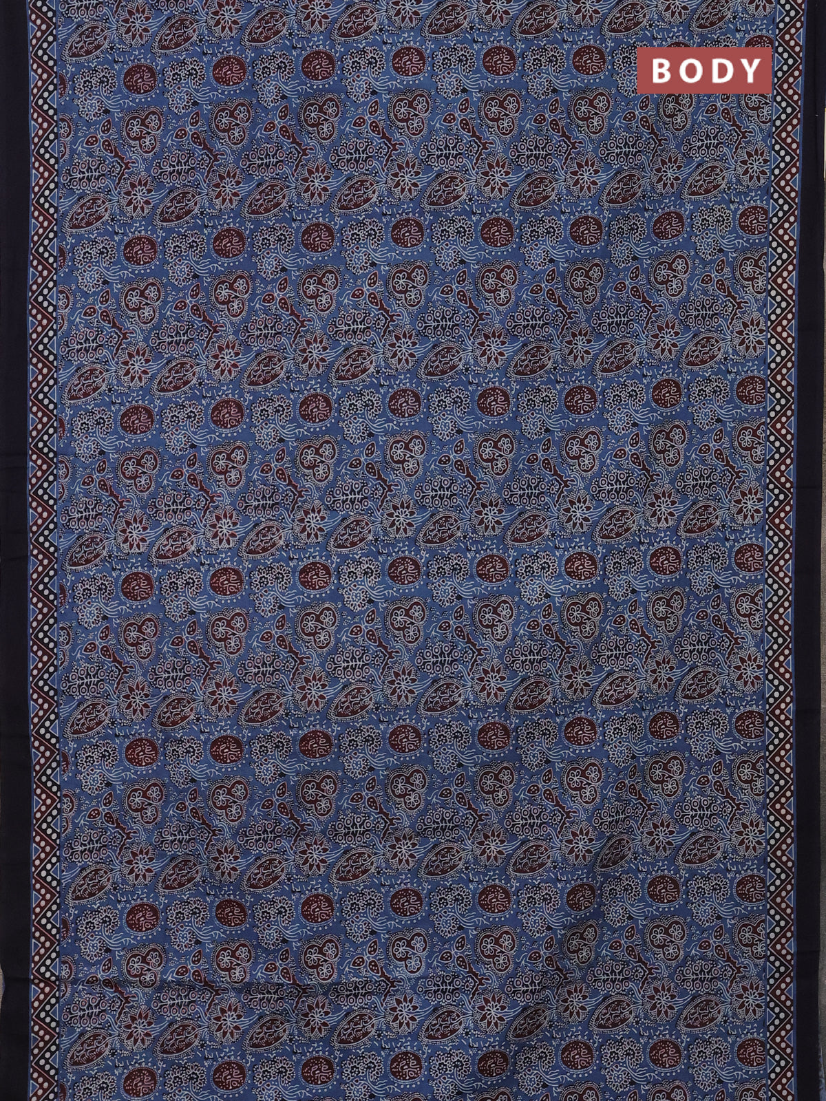 Jaipur cotton saree indigo blue and black with allover prints and printed border