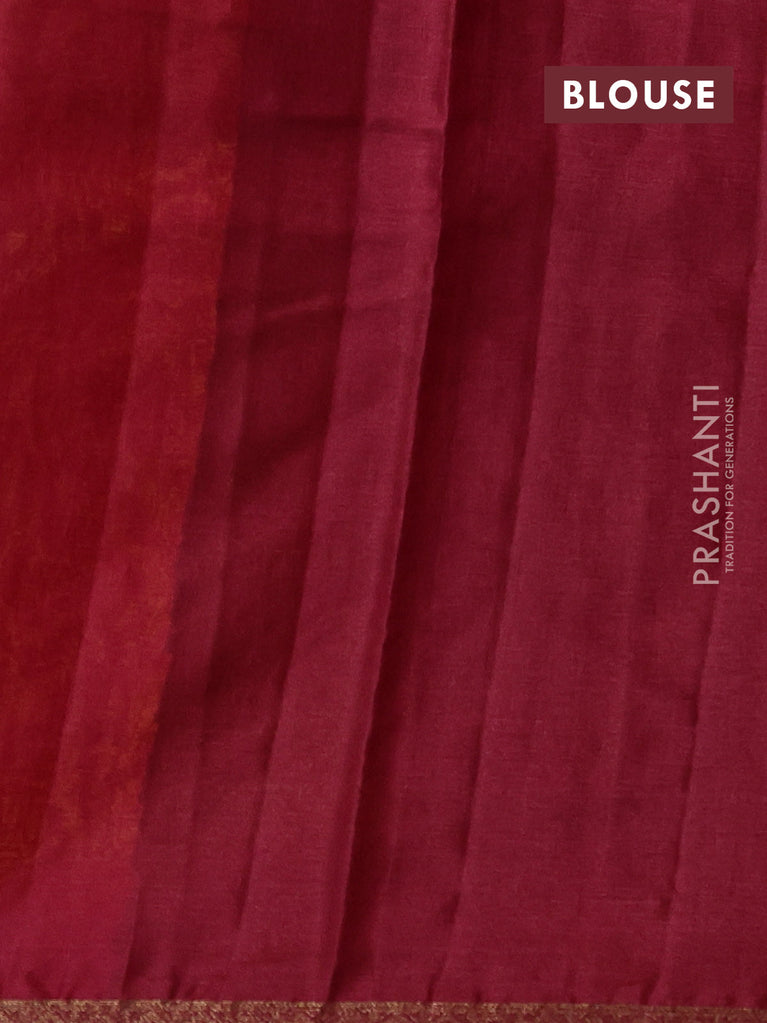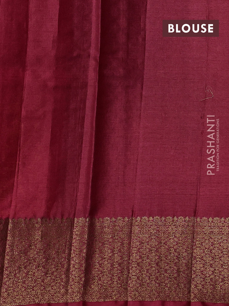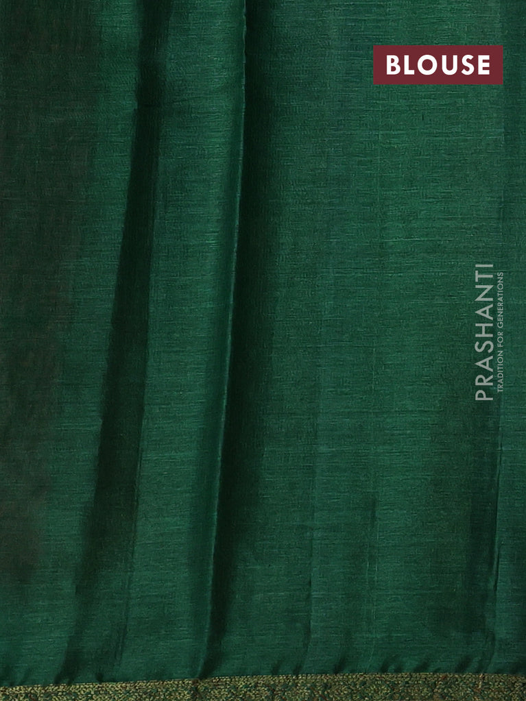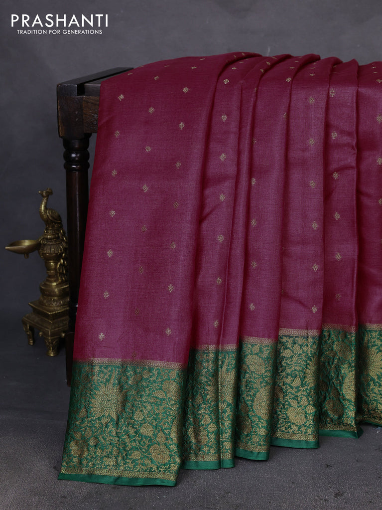 Banarasi tussar silk saree green and maroon with thread & zari woven buttas and woven border