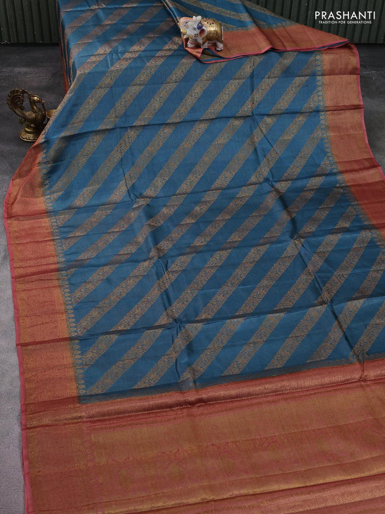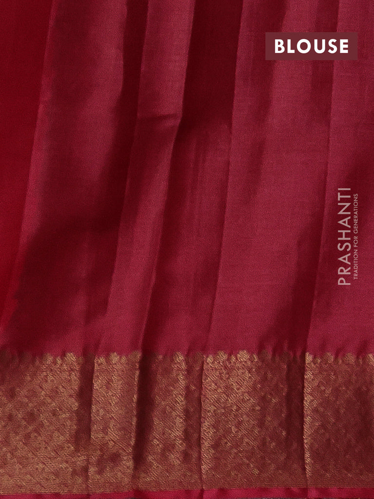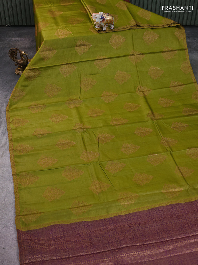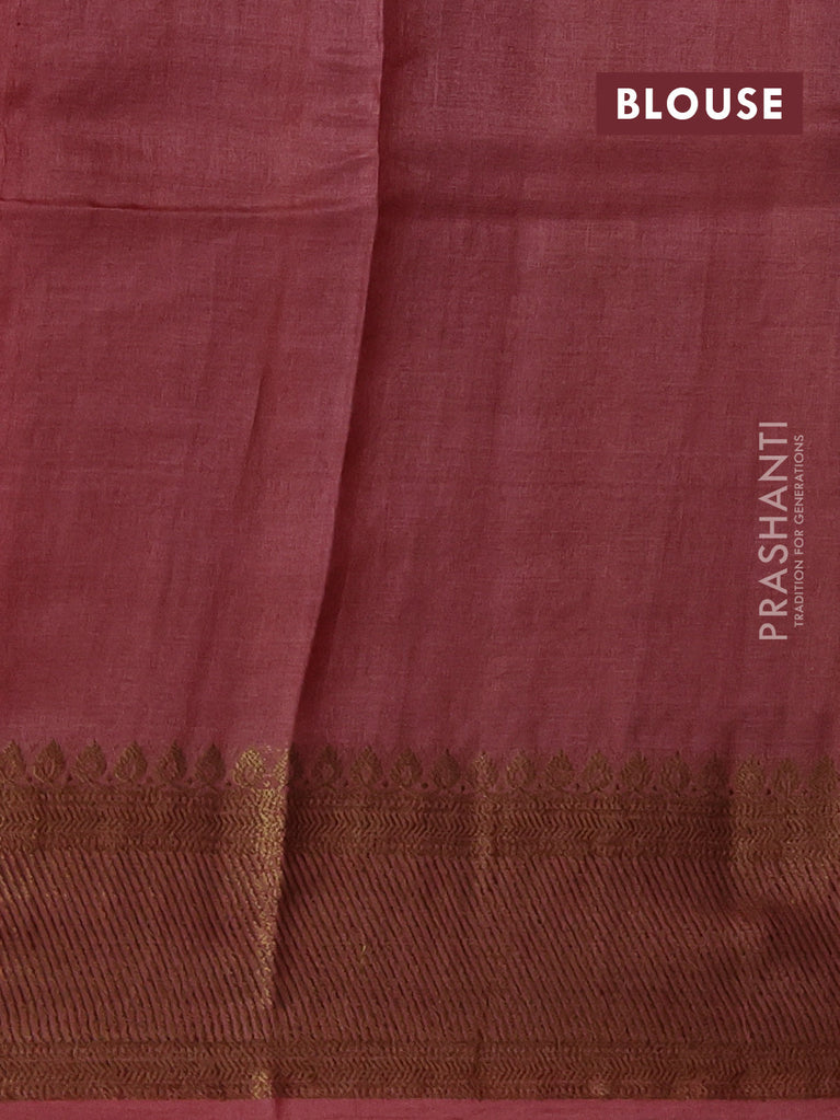 Banarasi tussar silk saree green and maroon with thread & zari woven buttas and woven border