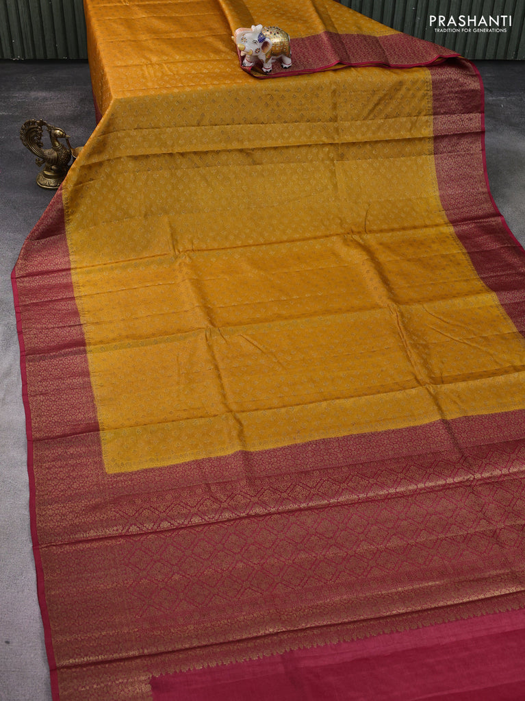 Banarasi tussar silk saree mustard yellow and pink with thread & zari woven buttas and woven border