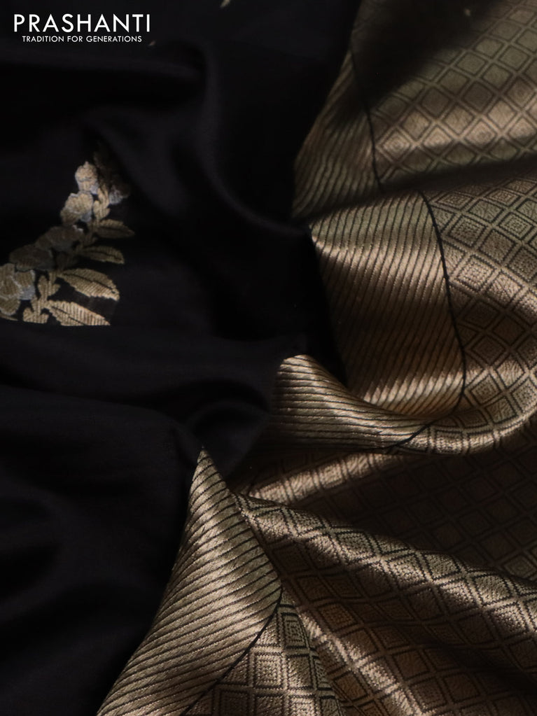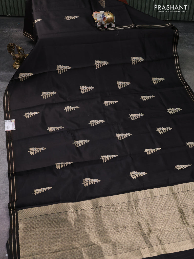 Banarasi poona silk saree black with zari woven leaf buttas and simple zari border