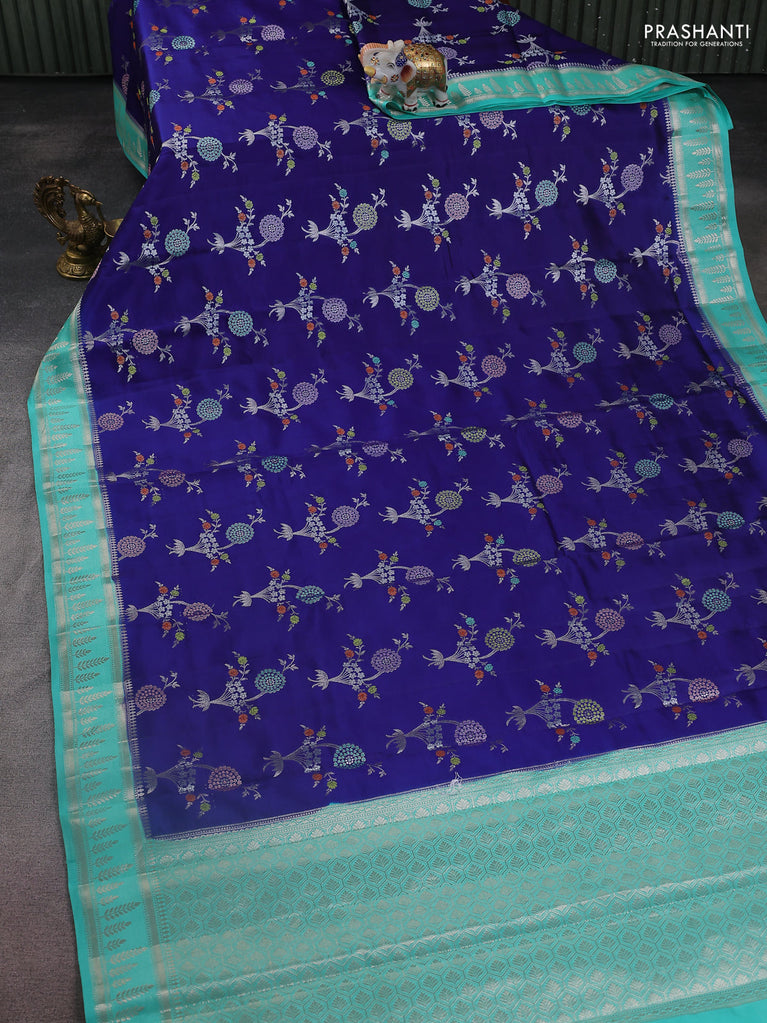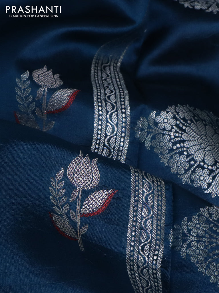 Banarasi poona silk saree blue and teal blue with silver zari woven buttas and rich zari woven border
