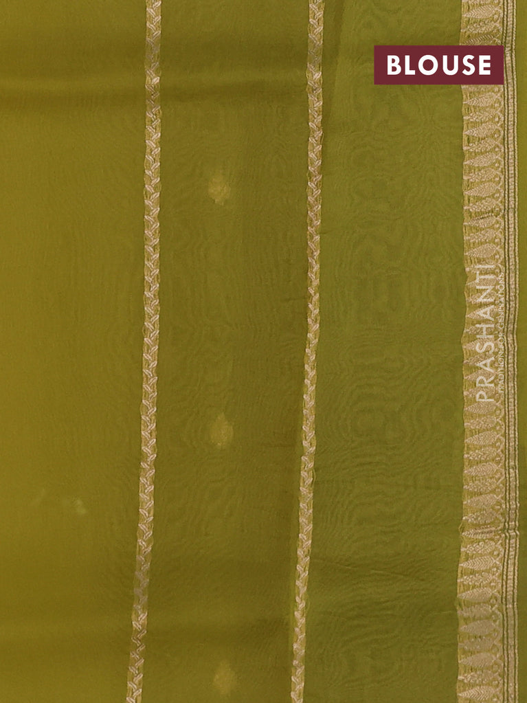 Banarasi organza silk saree lime yellow with zari woven buttas and zari woven piping border