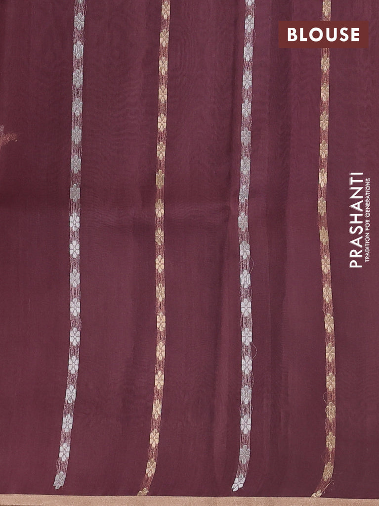 Banarasi organza silk saree maroon with zari woven buttas and zari woven piping border