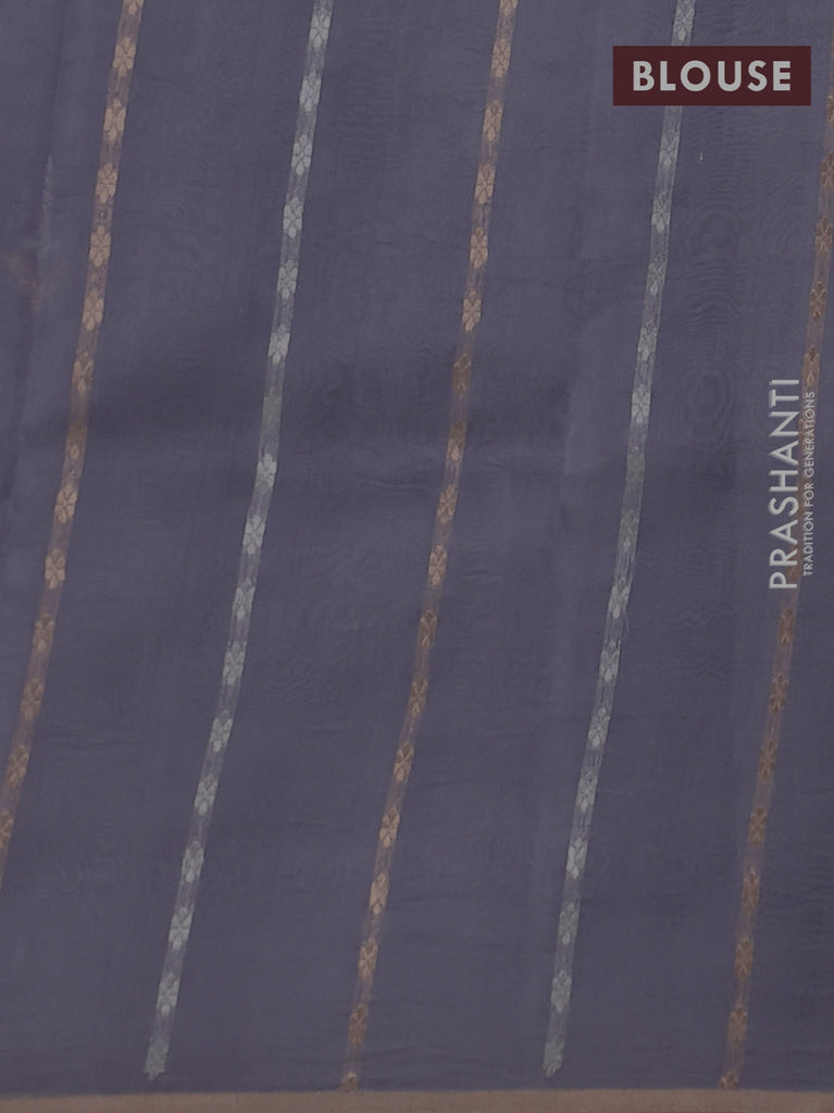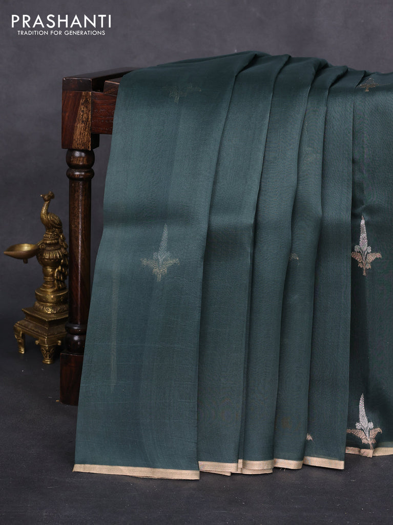 Banarasi organza silk saree greyish green with zari woven buttas and zari woven piping border
