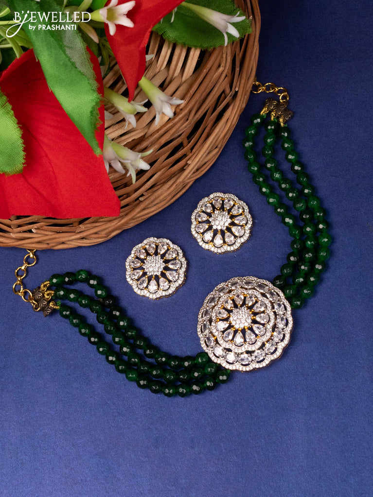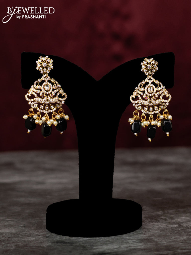 Beaded double layer black haram peacock design with cz stones and pearl & beads hangings in victorian finish