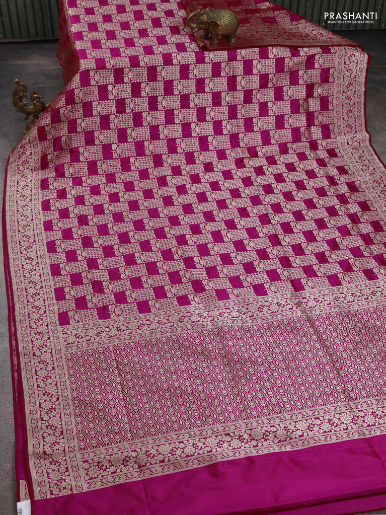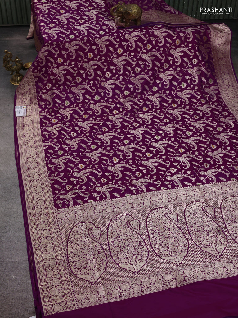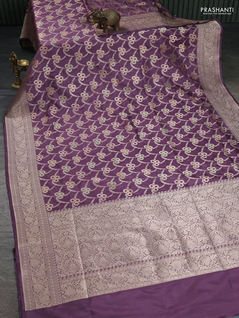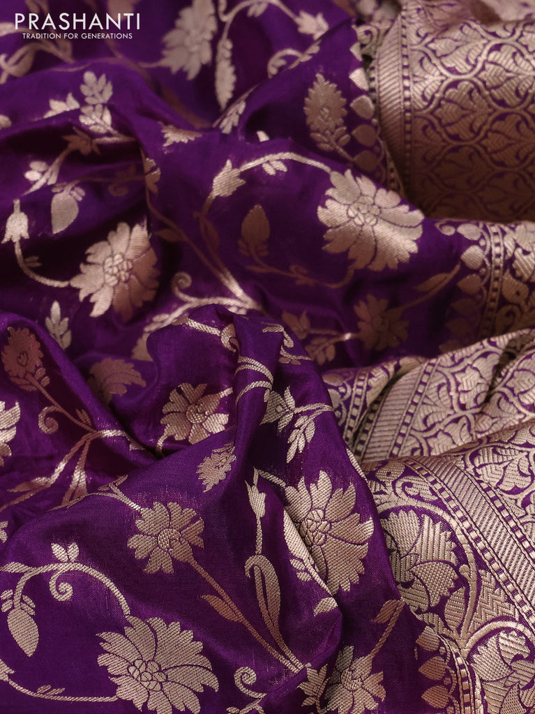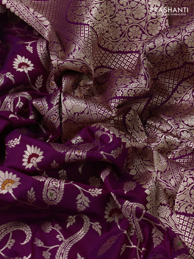 Banarasi uppada silk saree purple with allover zari woven floral brocade weaves and zari woven border