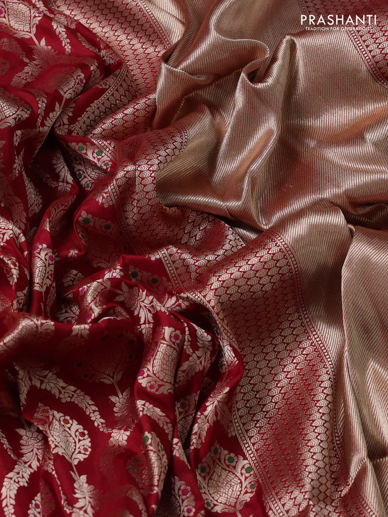 Banarasi uppada tissue silk saree red with allover zari woven brocade weaves and zari woven border