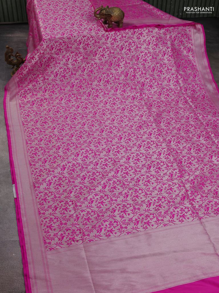 Banarasi uppada tissue silk saree silver and pink with allover zari woven brocade weaves and zari woven border