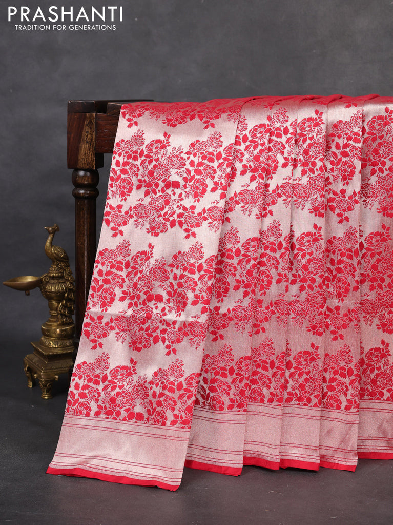 Banarasi uppada silk saree red with allover zari woven brocade weaves and zari woven border