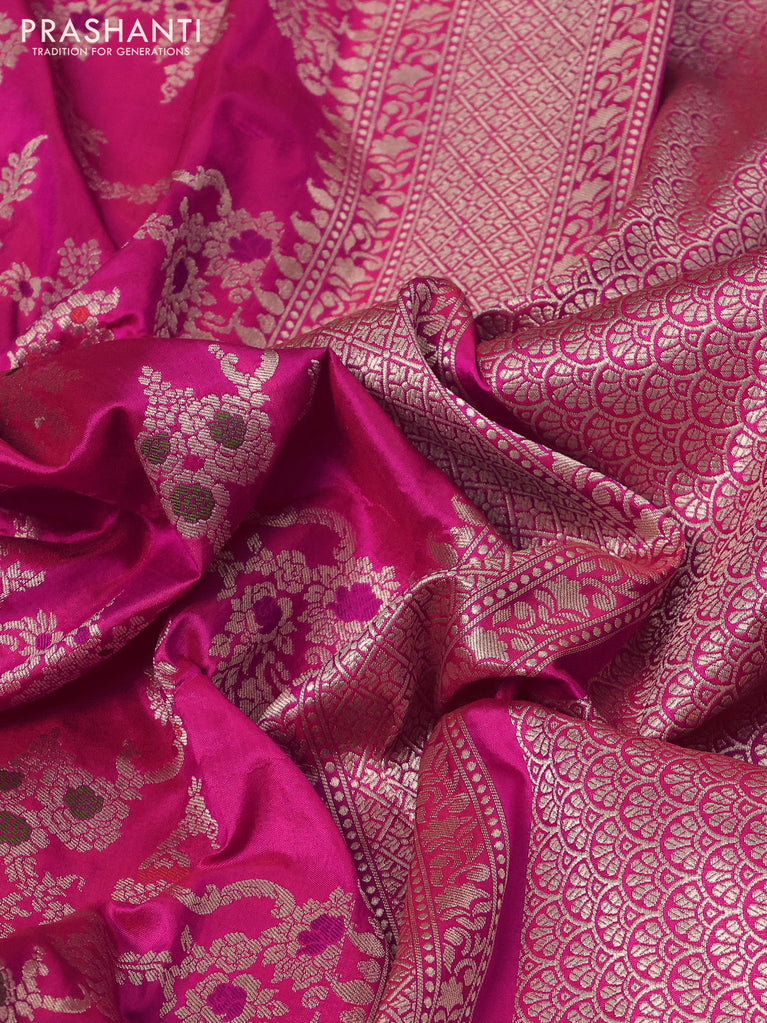 Banarasi uppada silk saree pink with allover zari woven brocade weaves and zari woven border