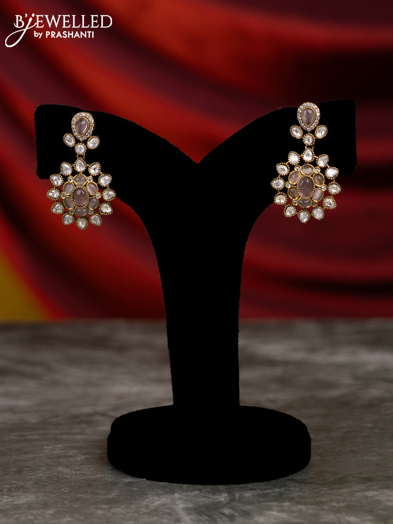 Beaded pink necklace with baby pink & kundan stones and pearl & beads hangings in victorian finish