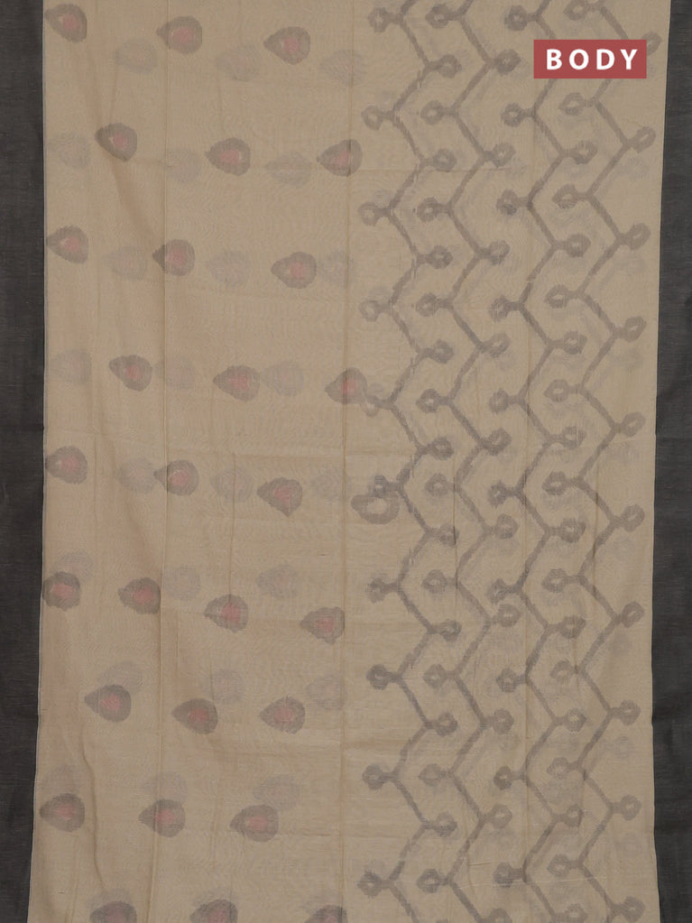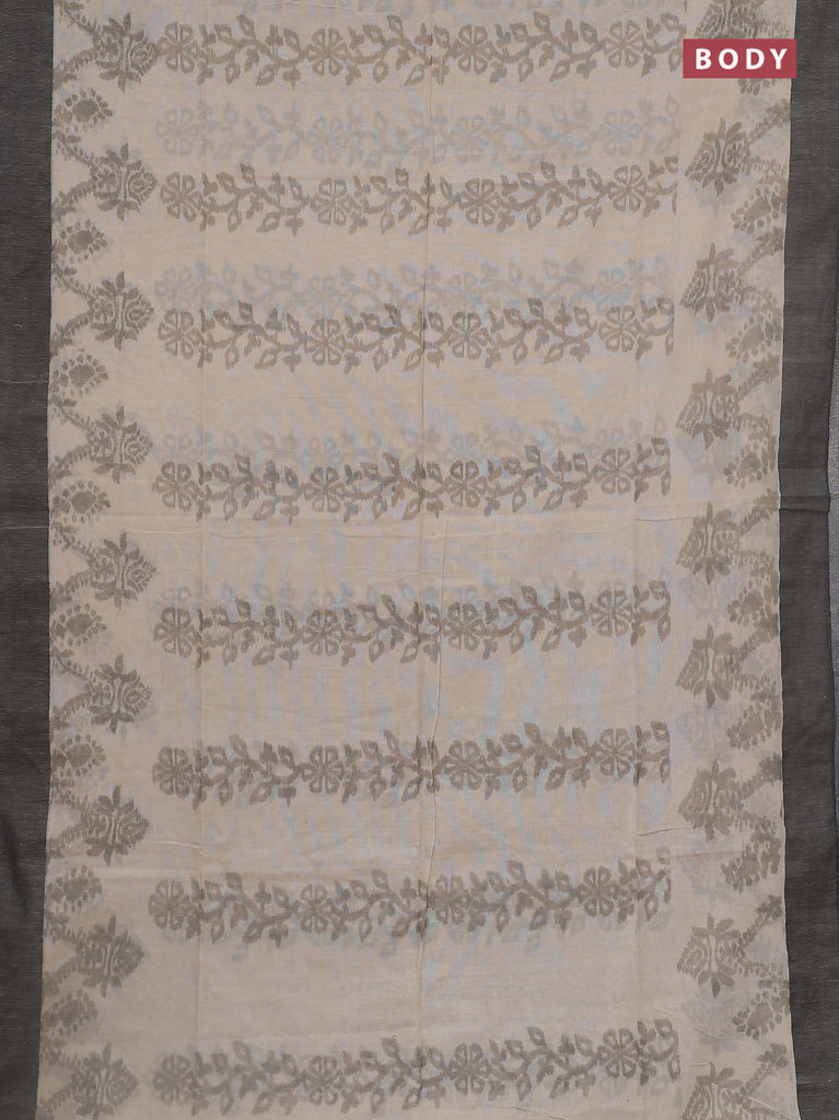 Bengal soft cotton saree beige and grey with allover weaves and simple border