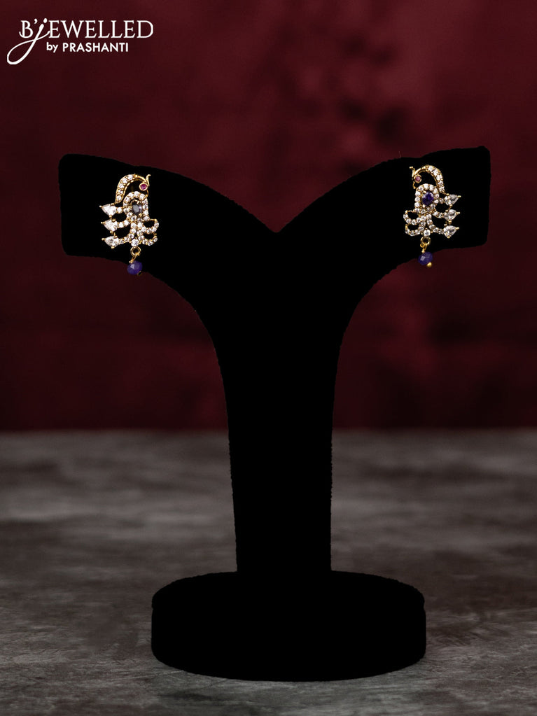 Beaded multilayer violet necklace with peacock side pendant and cz stones in victorian finish