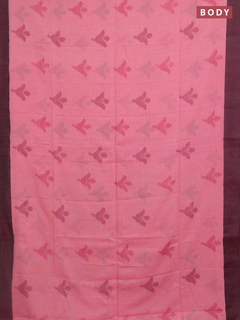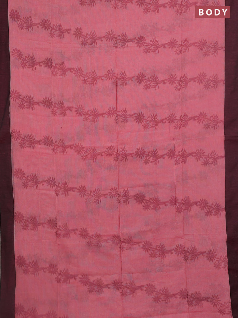 Bengal soft cotton saree peach pink and maroon with allover butta weaves and simple border