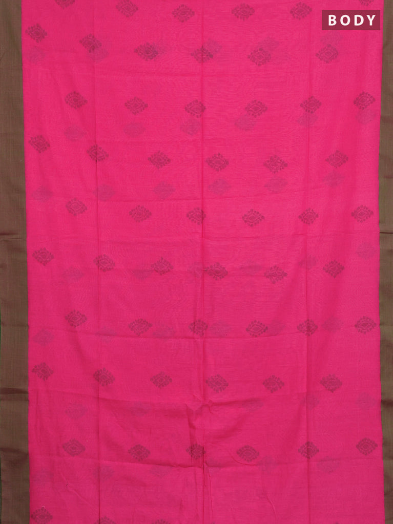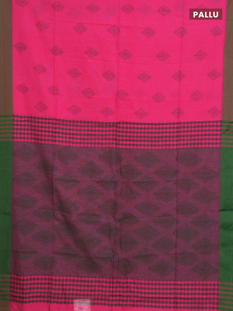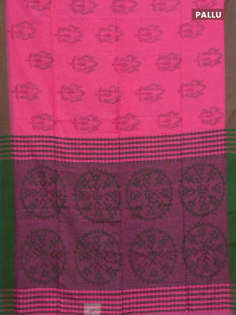 Bengal soft cotton saree pink and green with allover butta weaves and simple border