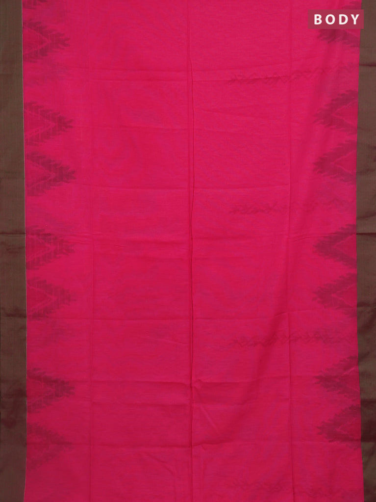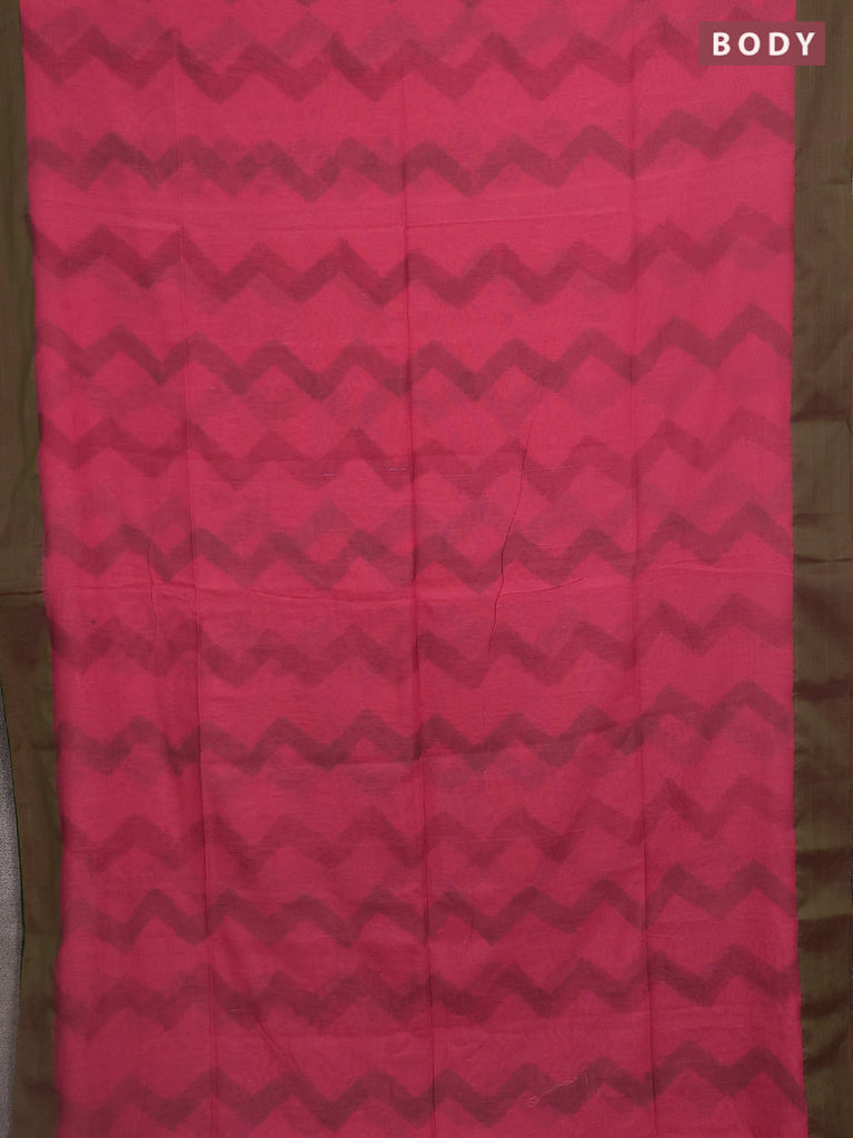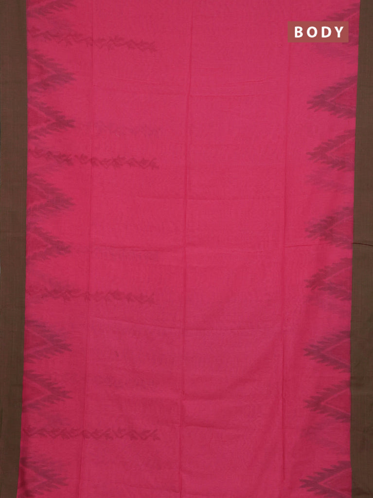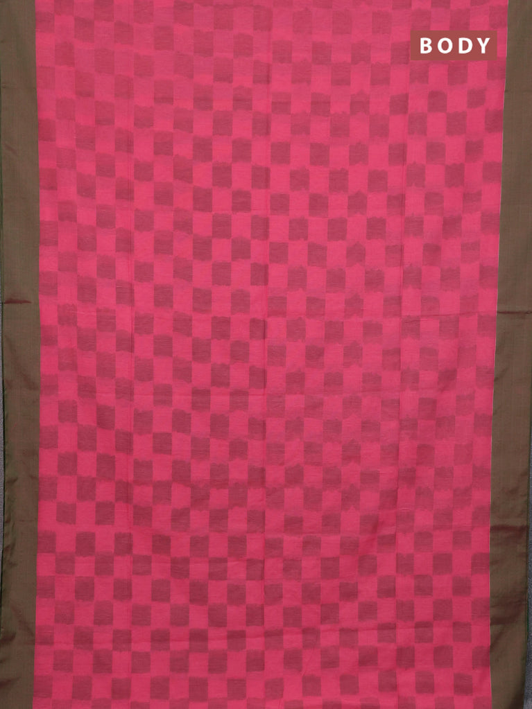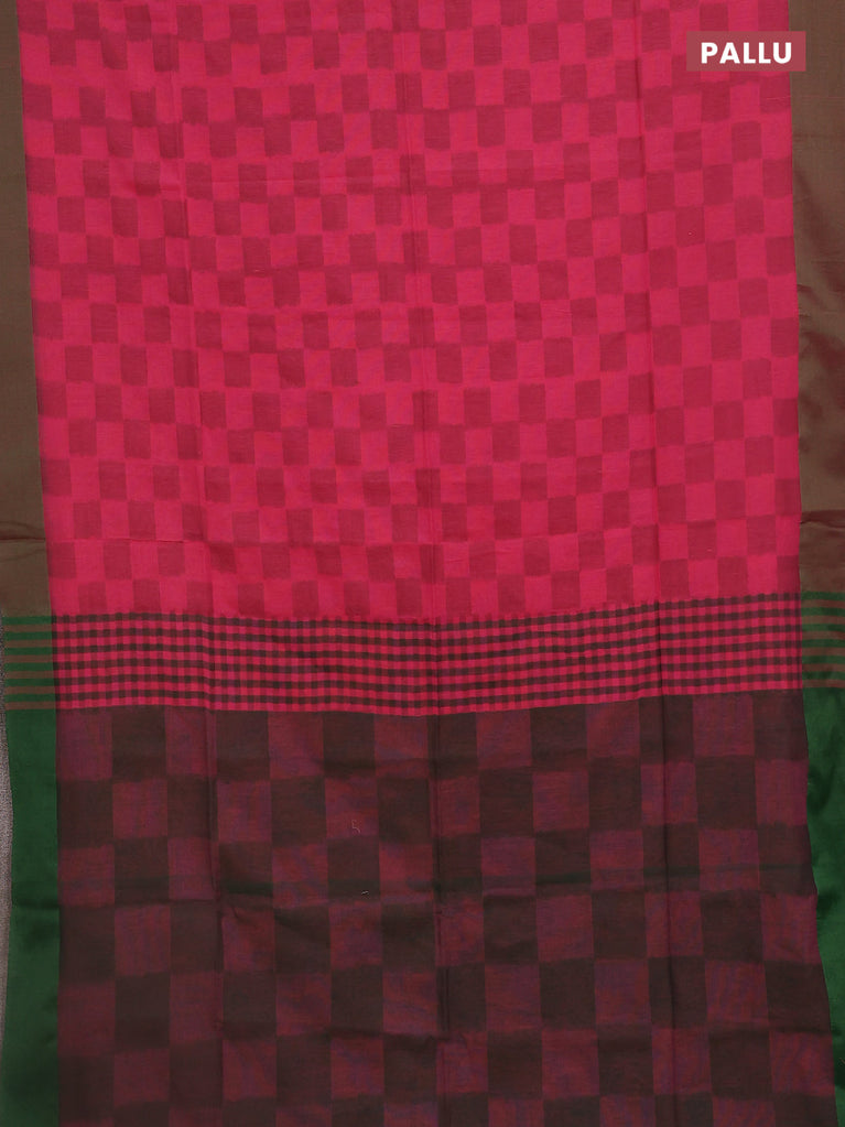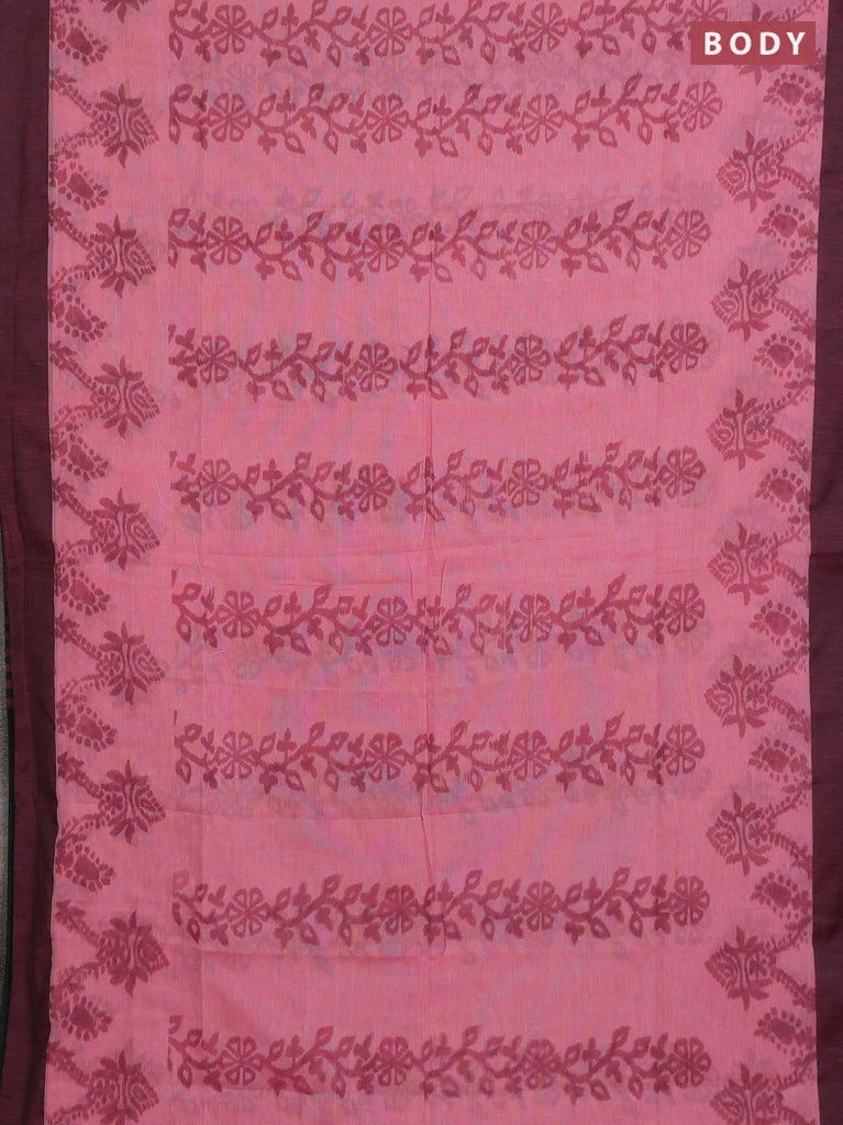 Bengal soft cotton saree pink and green with allover weaves and simple border