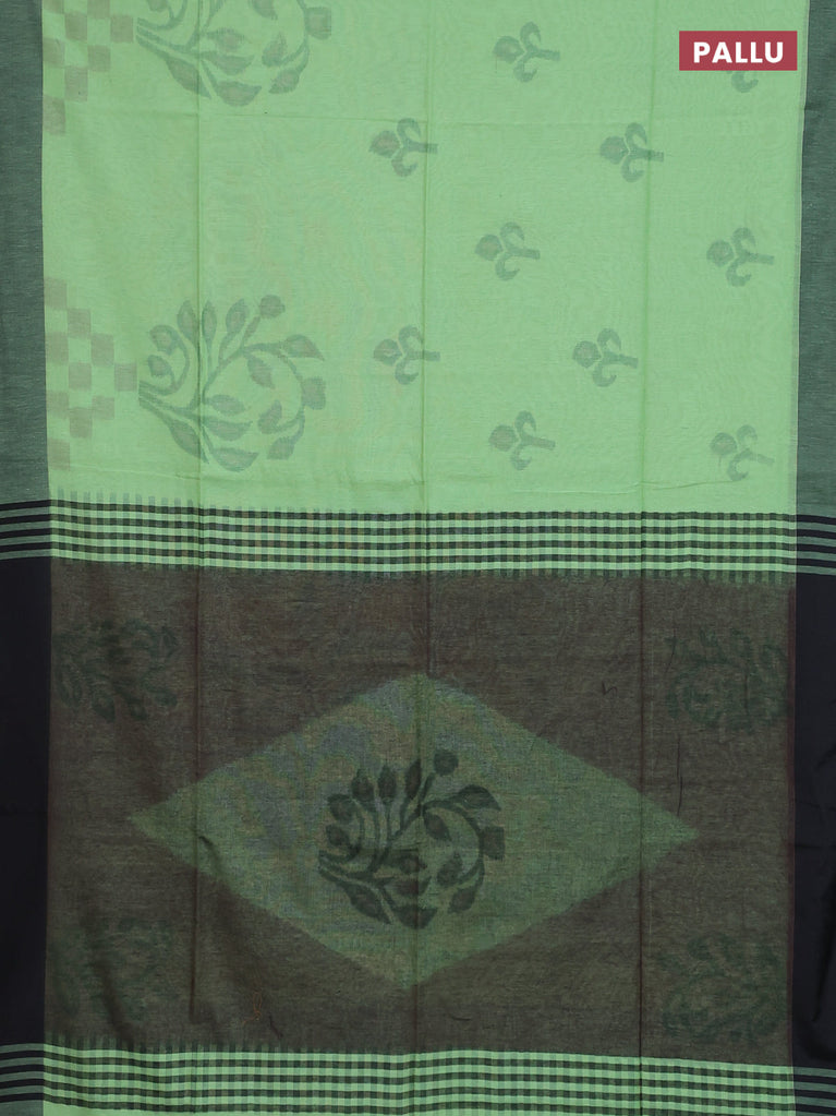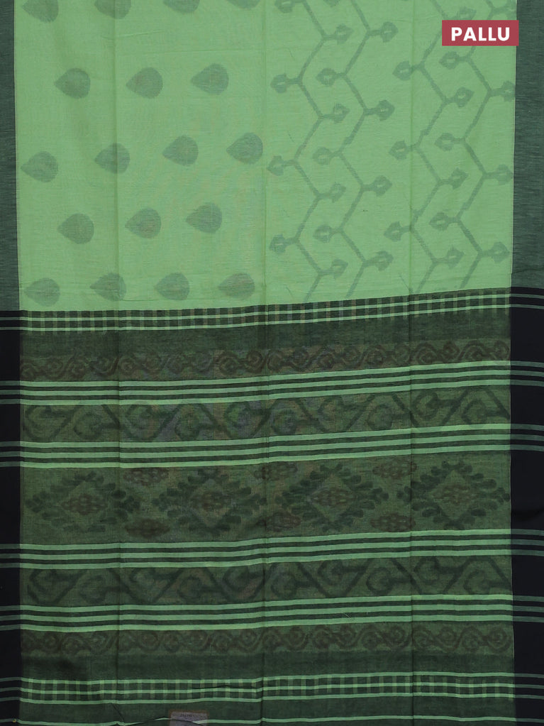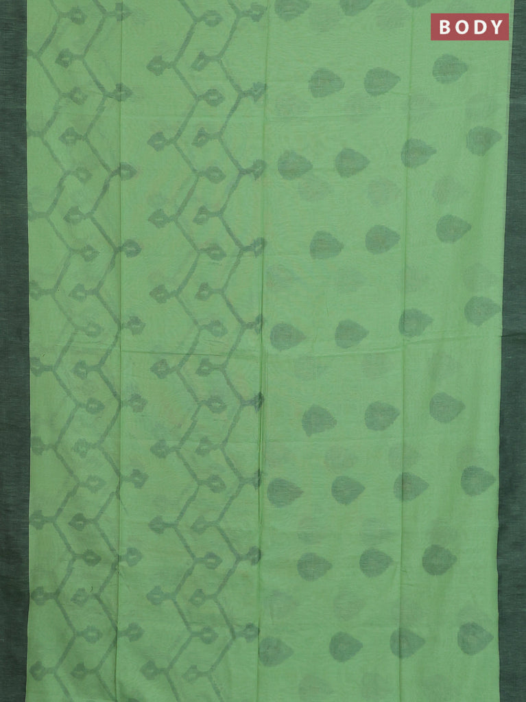 Bengal soft cotton saree pista green and black with allover butta weaves and simple border