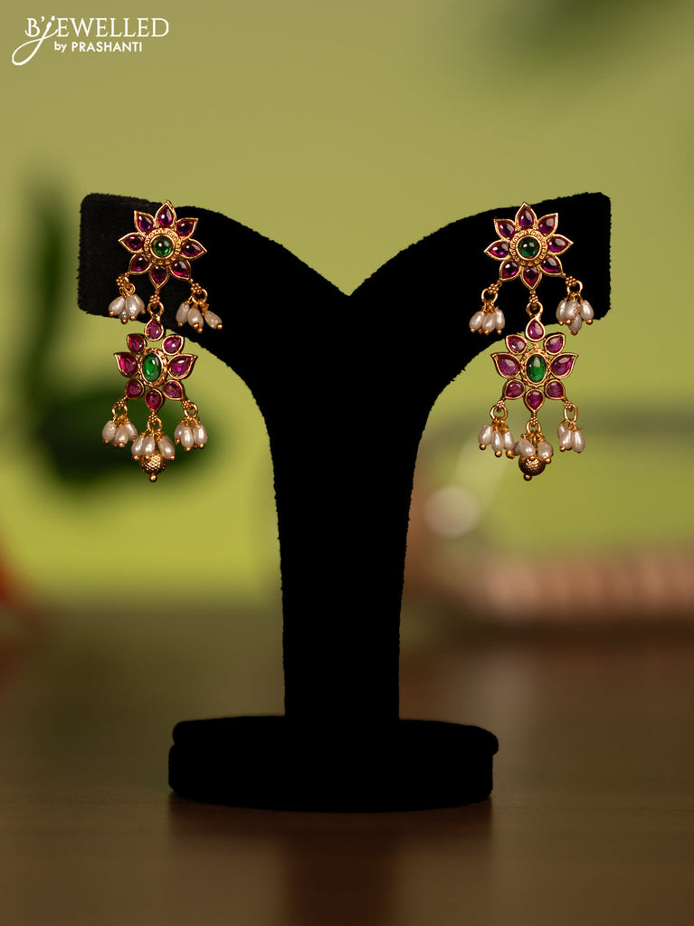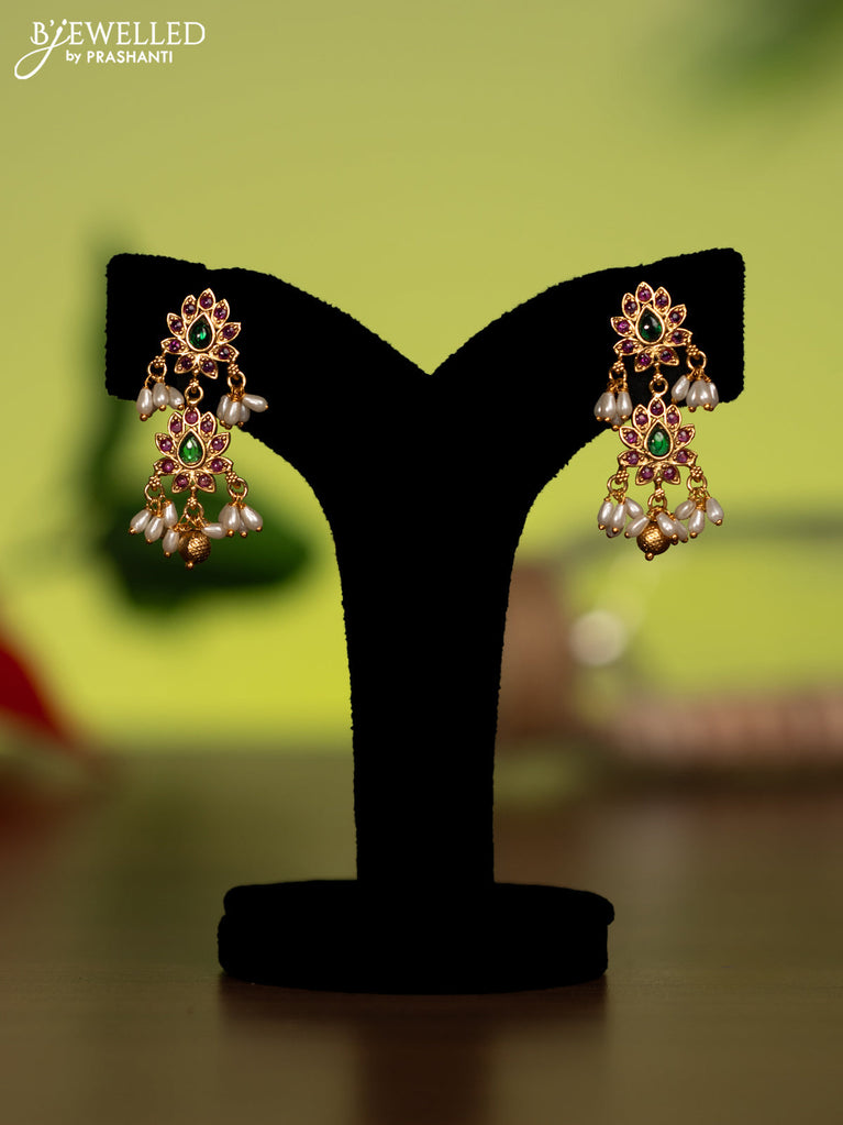 Antique attigai necklace with kemp & cz stones and pearl hangings