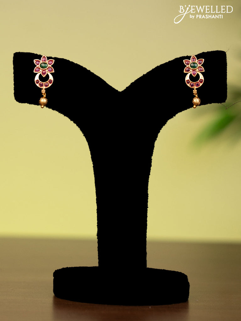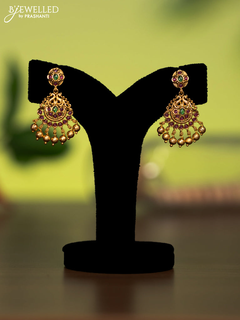 Antique attigai necklace with kemp stones and golden beads hanging without earrings
