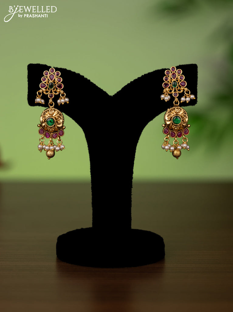 Antique attigai necklace with kemp stones and pearl & golden beads hanging