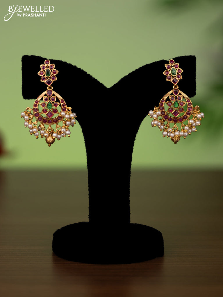 Antique attigai necklace with kemp & kumdan stones and pearl hangings