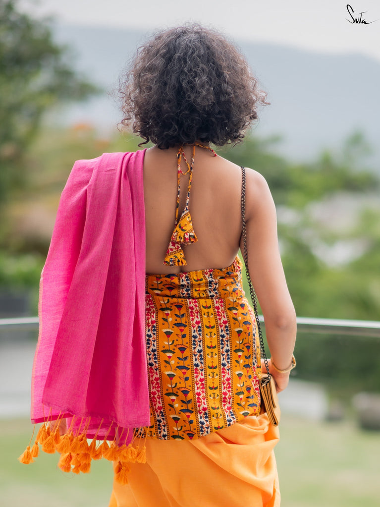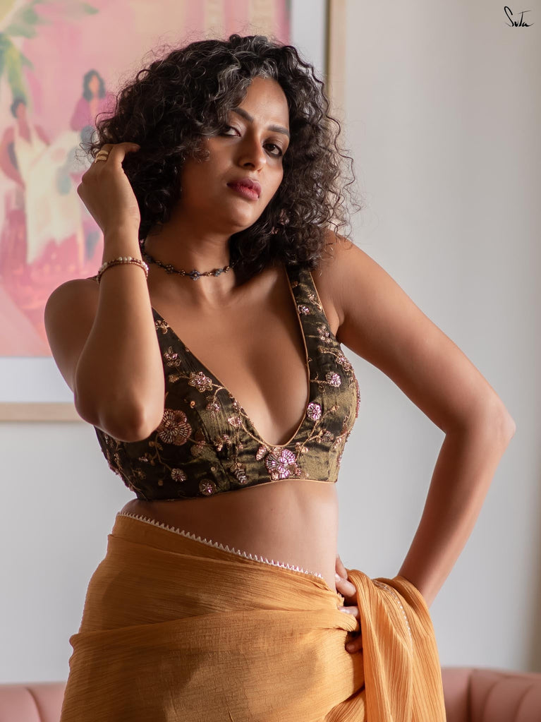 Saree: Su, the model is wearing Size S blouse and saree is : Wild figs , Flamenco Dance