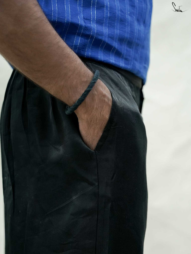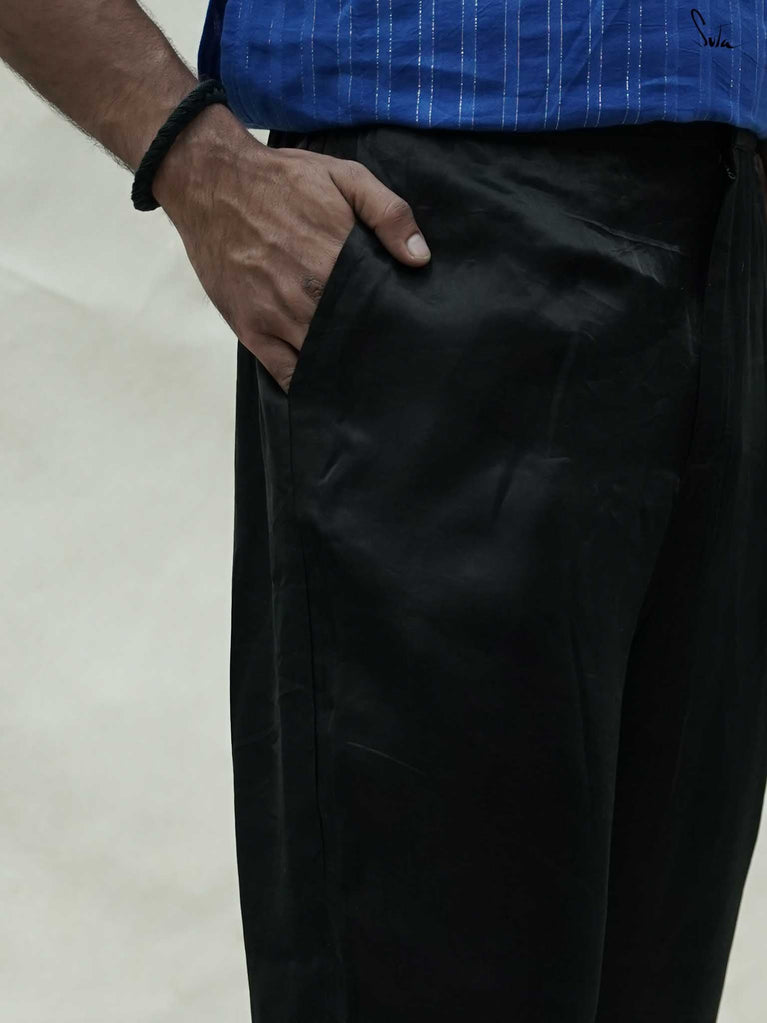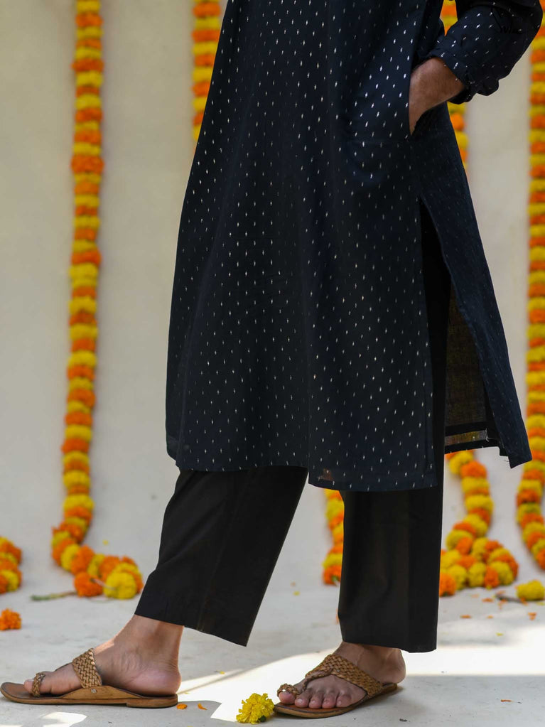 Kuch to khas hai! Discover the vibrant Tyohaar collection from Adam Me by Suta, where each kurta embodies the spirit of festivity and tells a story of joy and togetherness.Introducing the Black Saaya Kurta, a stunning viscose blend piece that exudes sophistication and elegance. With its straight fit and two pleats, this kurta drapes beautifully, making it perfect for festive evenings. The classic black hue serves as a versatile canvas for accessorizing, allowing you to express your unique style while celebrating the warmth of togetherness.This season, let “tyohaar” celebrate the joy of gathering with loved ones.