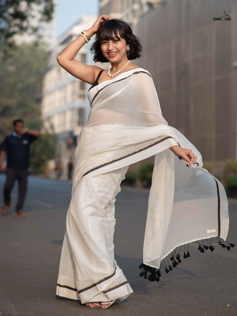 The word Rohi means “a flower that touches a heart". Drawing inspiration from its name, this saree spreads a message of celebrating the simple joys of day-to-day life and inspires us to sport a bright smile even in the most adverse situations. The serenity of the color white gets intertwined with the mysterious black, and it all together creates a symphony that describes beauty, warmth, and timelessness. Honoring the hands that weave magic with their tireless efforts, the saree is a beauty waiting to be explored!