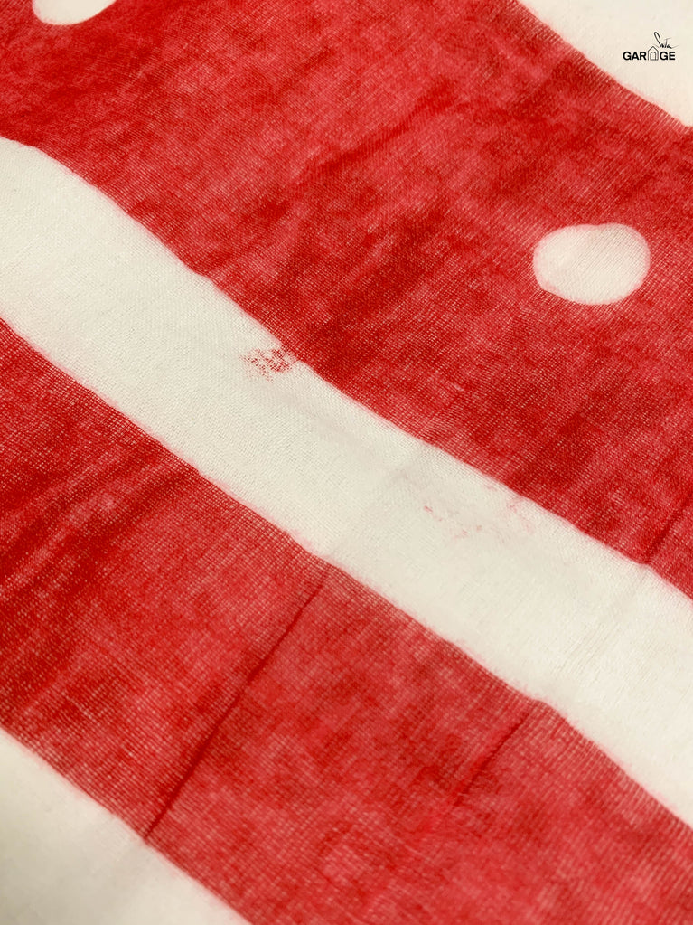 The designs on this fabric come alive on our made-in-heaven mul sarees through an intricate process known as screen-printing. This process involves the usage of a mesh-screen made of synthetic polymers that is strung onto a metal or wooden frame at high tension. A stencil with the negative image of what is to be printed is placed beneath the screen and emulsion is applied to create a positive image that lets the dye seep through the screen. The dye is then applied on the fabric through the screen to print the desired image.