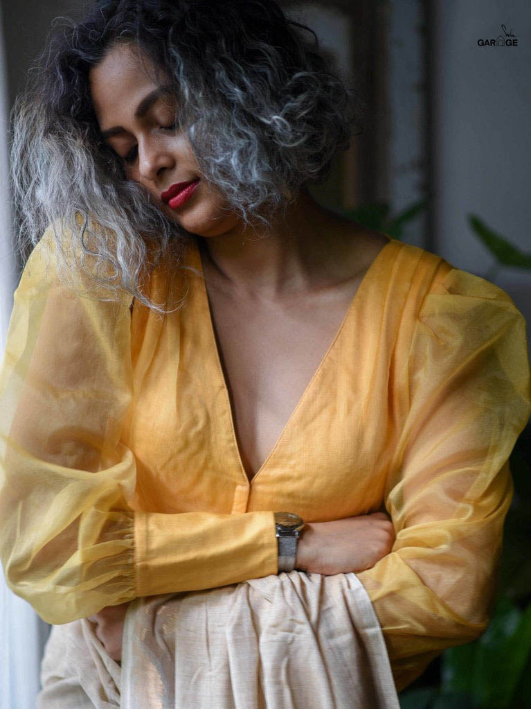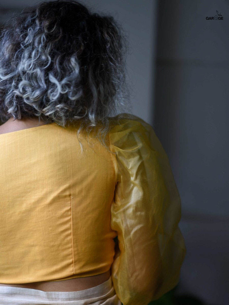 This blouse is made of cotton and organza fabrics.Cotton fabric dates back to some of the most ancient civilizations and it has a strong presence in the modern wardrobe as well. The incredible softness and lightness of cotton combined with its strength and versatility makes it one of the most popular choices, especially for the Indian climate. The comfort and the amazing feel that cotton offers is unparalleled! This blouse brings together the comfort of cotton with the transparent yet sheer effect of organza weave in a polyester fabric in just the right design to give you an amazing styling and wearing experience!