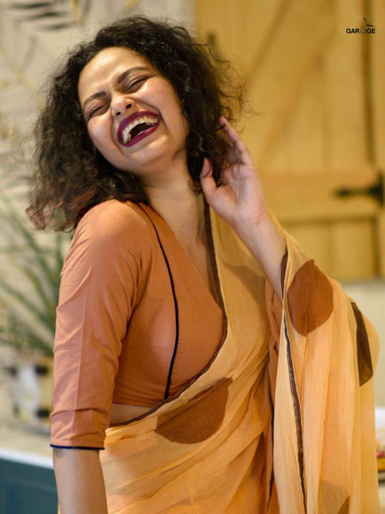 Su, the model is wearing size S blouse and the saree is In my Desert Planet Polka.