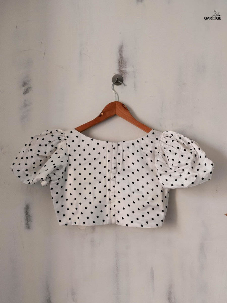 Su, the model is wearing size S blouse and the saree is Flying to the Moon Polka.