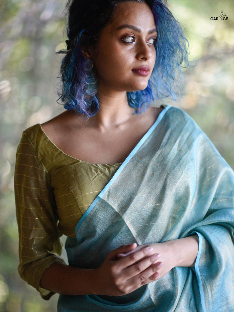Su, the model is wearing size S blouse and the saree is Fireflies in the Garden Polka.