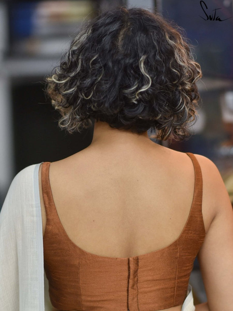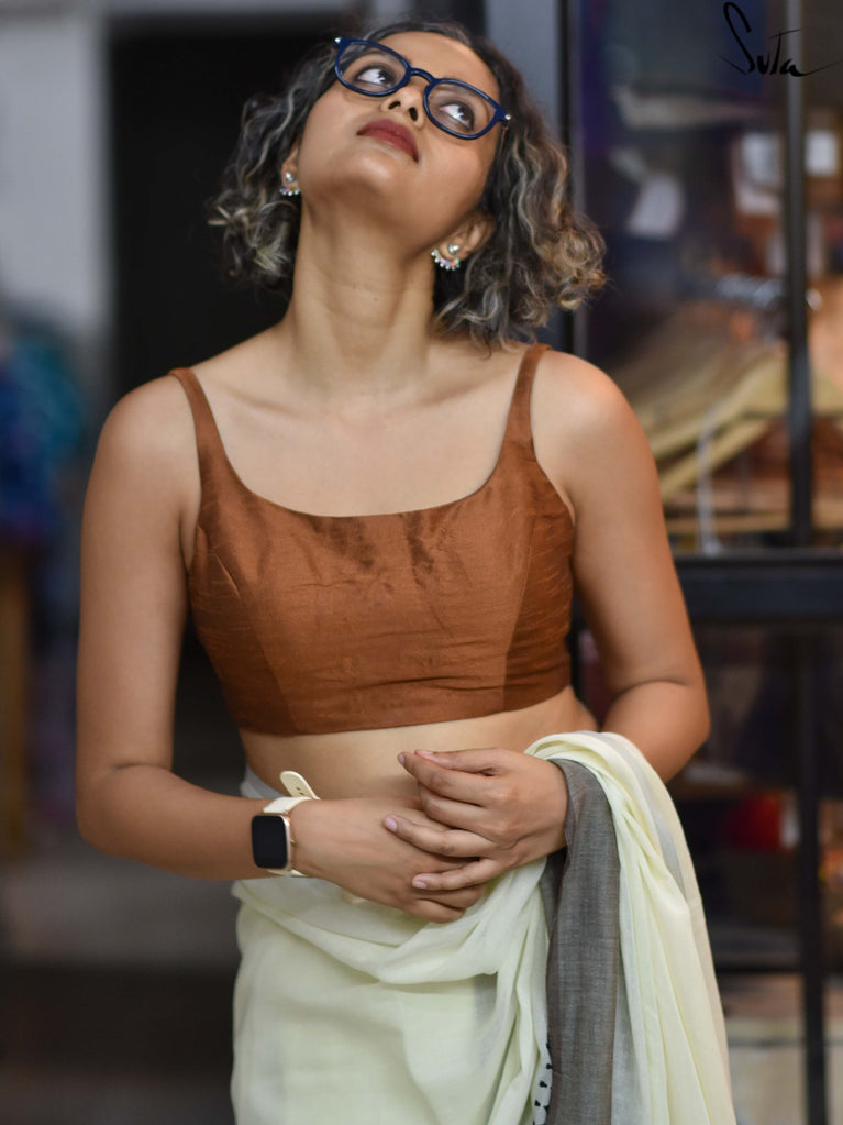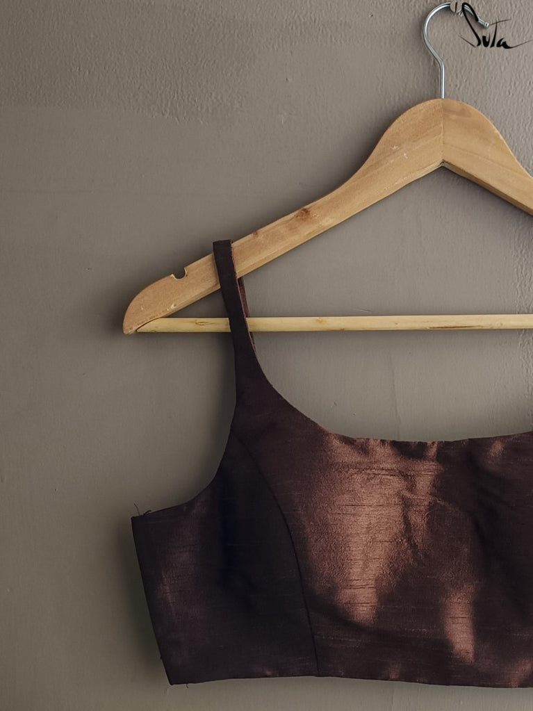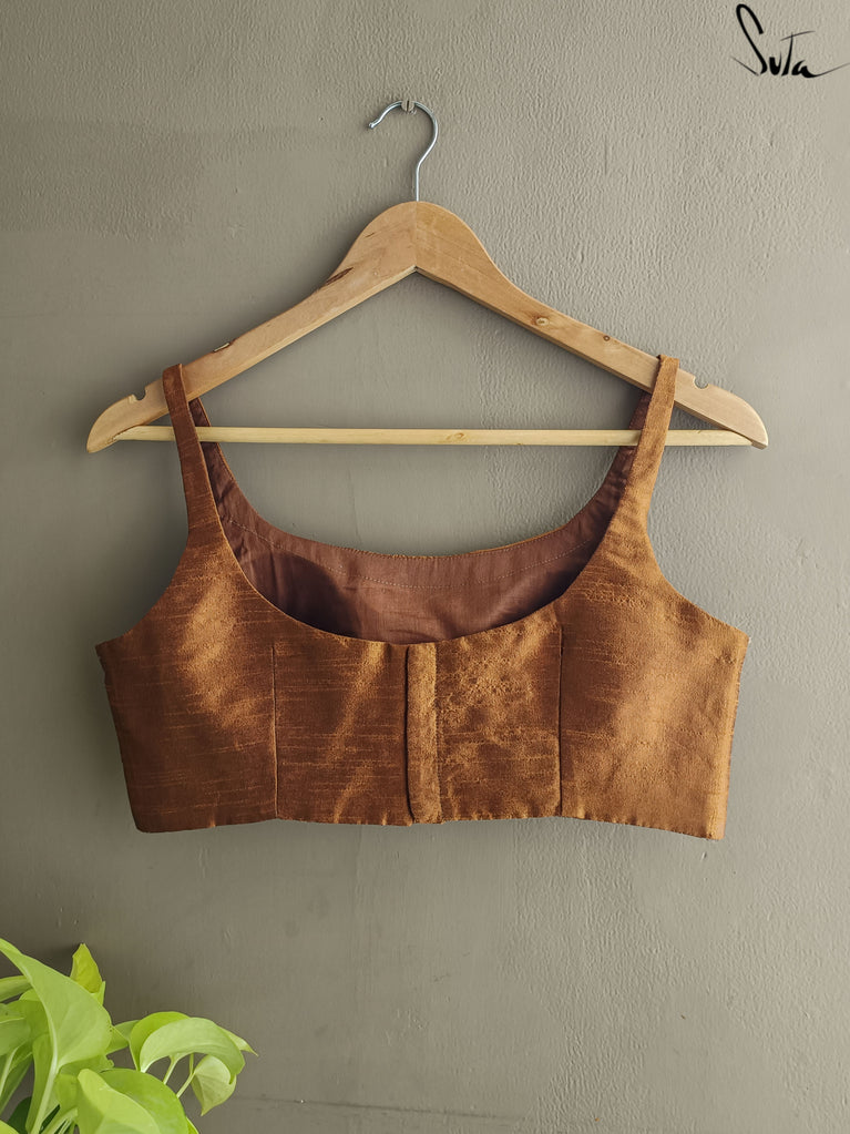 This stunning brown art silk blouse is as essential and as precious as the soil that nurtures us.
