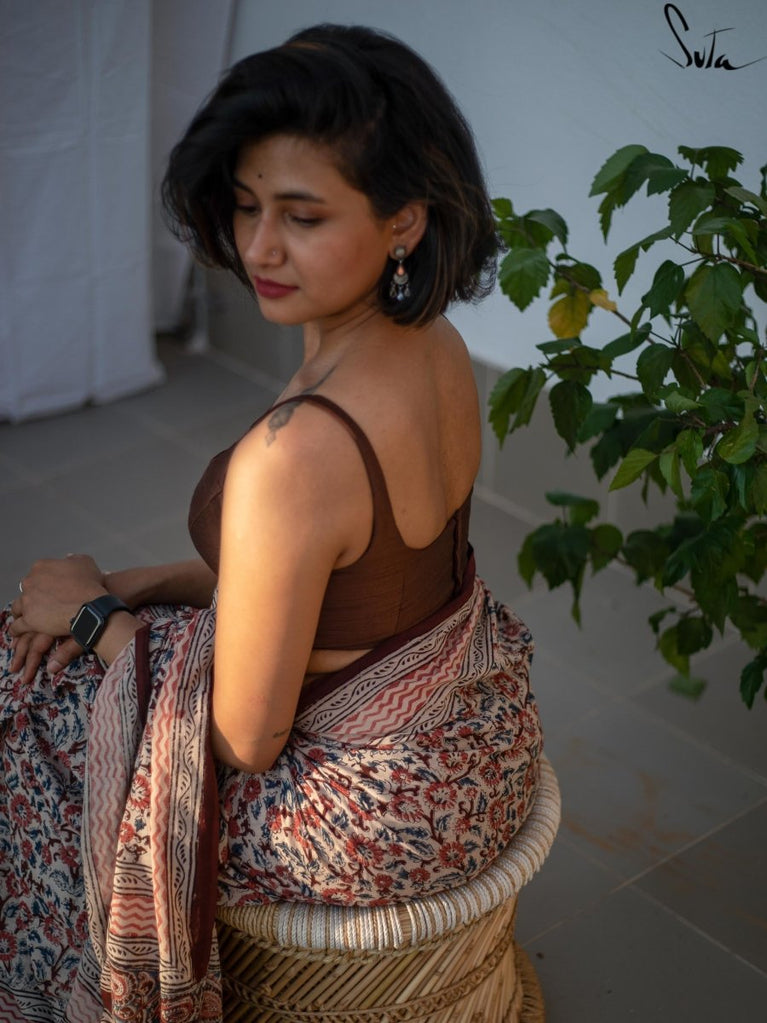 Blouse : Su ,the model is wearing size S blouse and the saree is Withered forest Swara , Whimsical Sitara