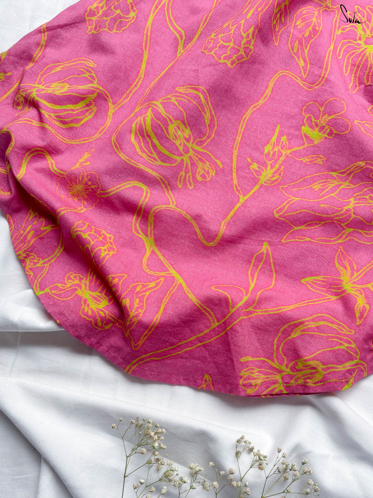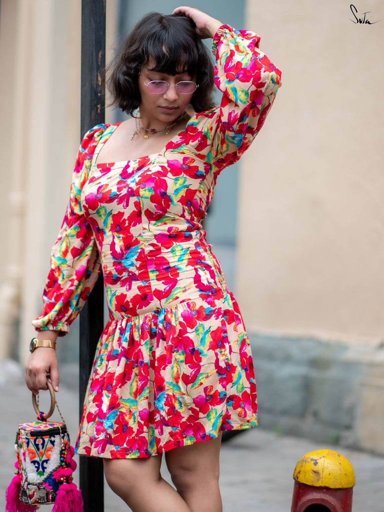 Designed to move with you. This multicolour floral printed dress features a flattering square neckline, playful back tie-up, and smocked bodice with elastic at the waist and hips for a perfect fit. Crafted in soft cotton, it’s both breezy and body-friendly. Whether you're heading for brunch or dancing barefoot at home, this one’s built for flounce and flair.