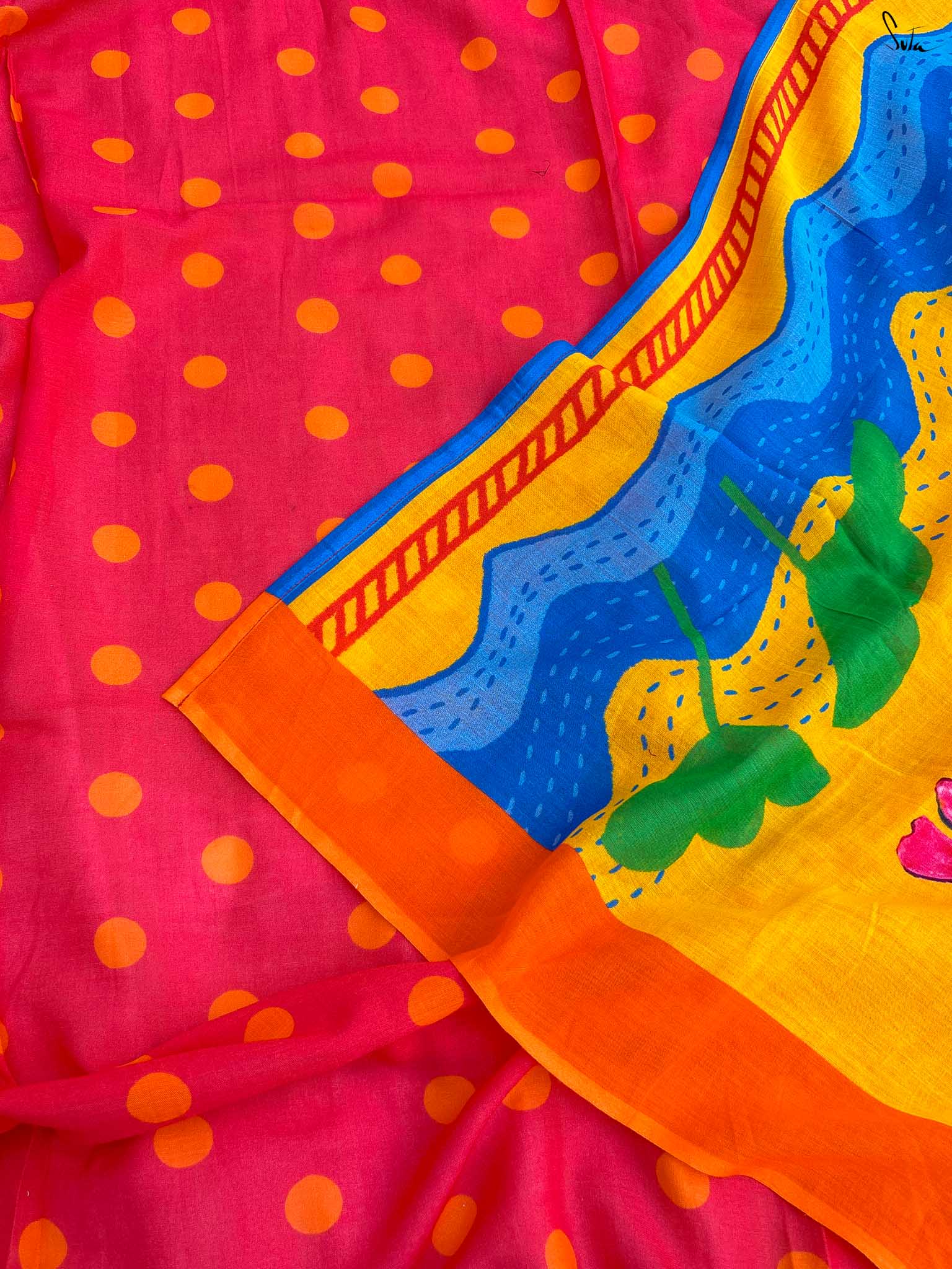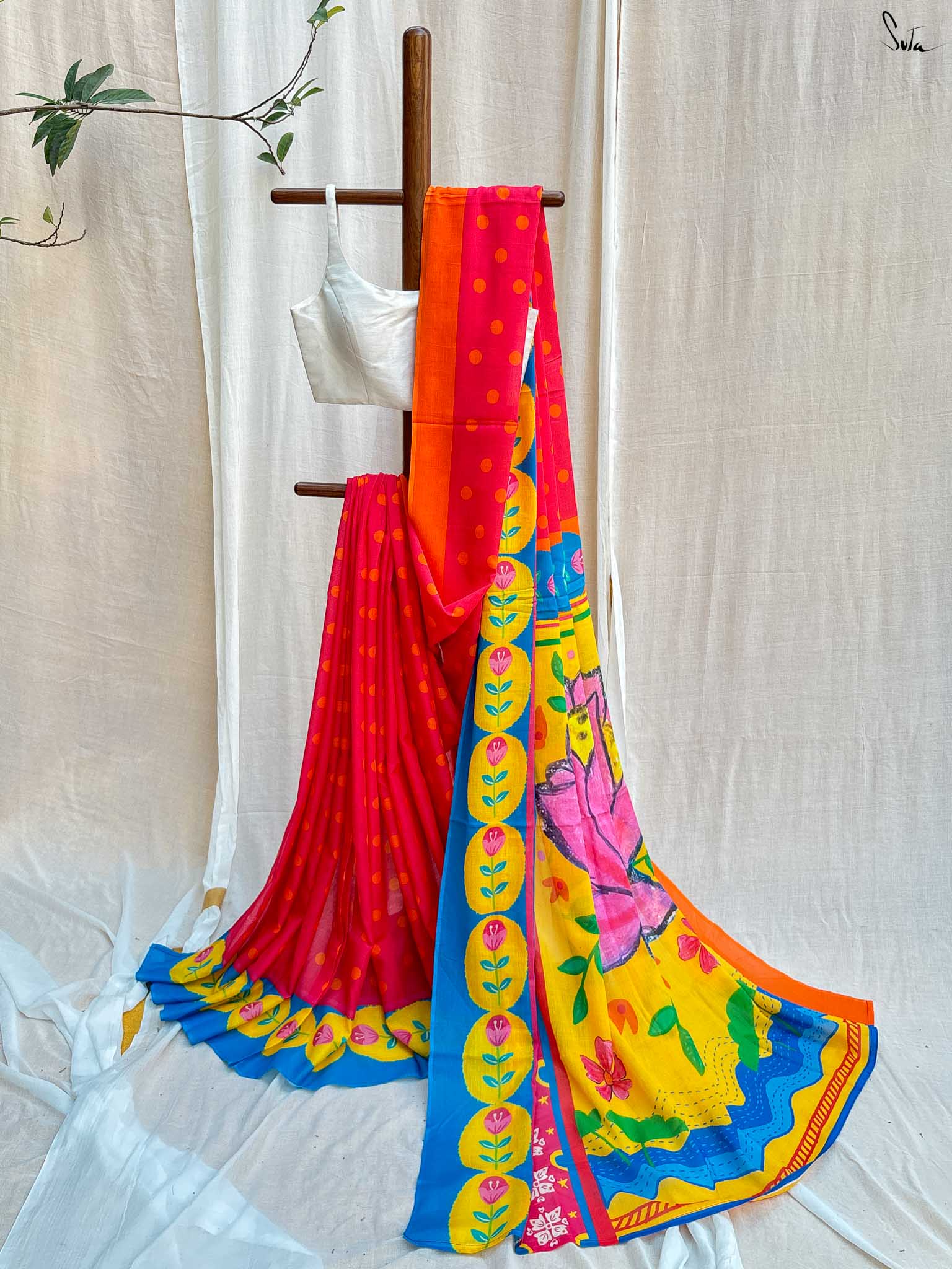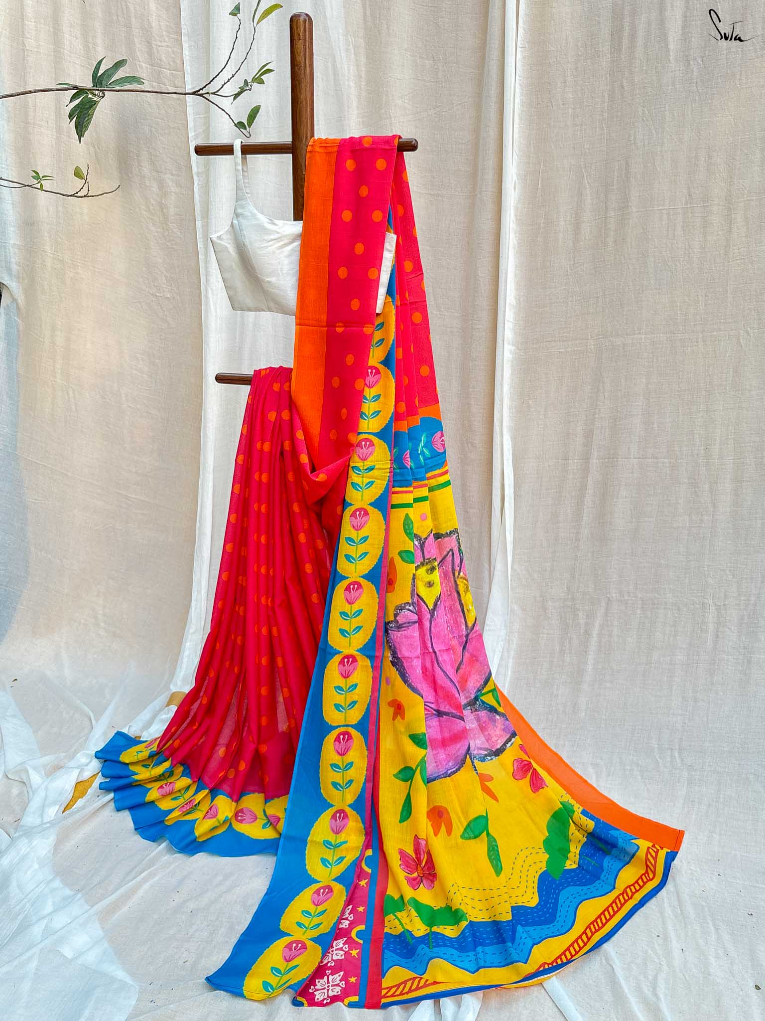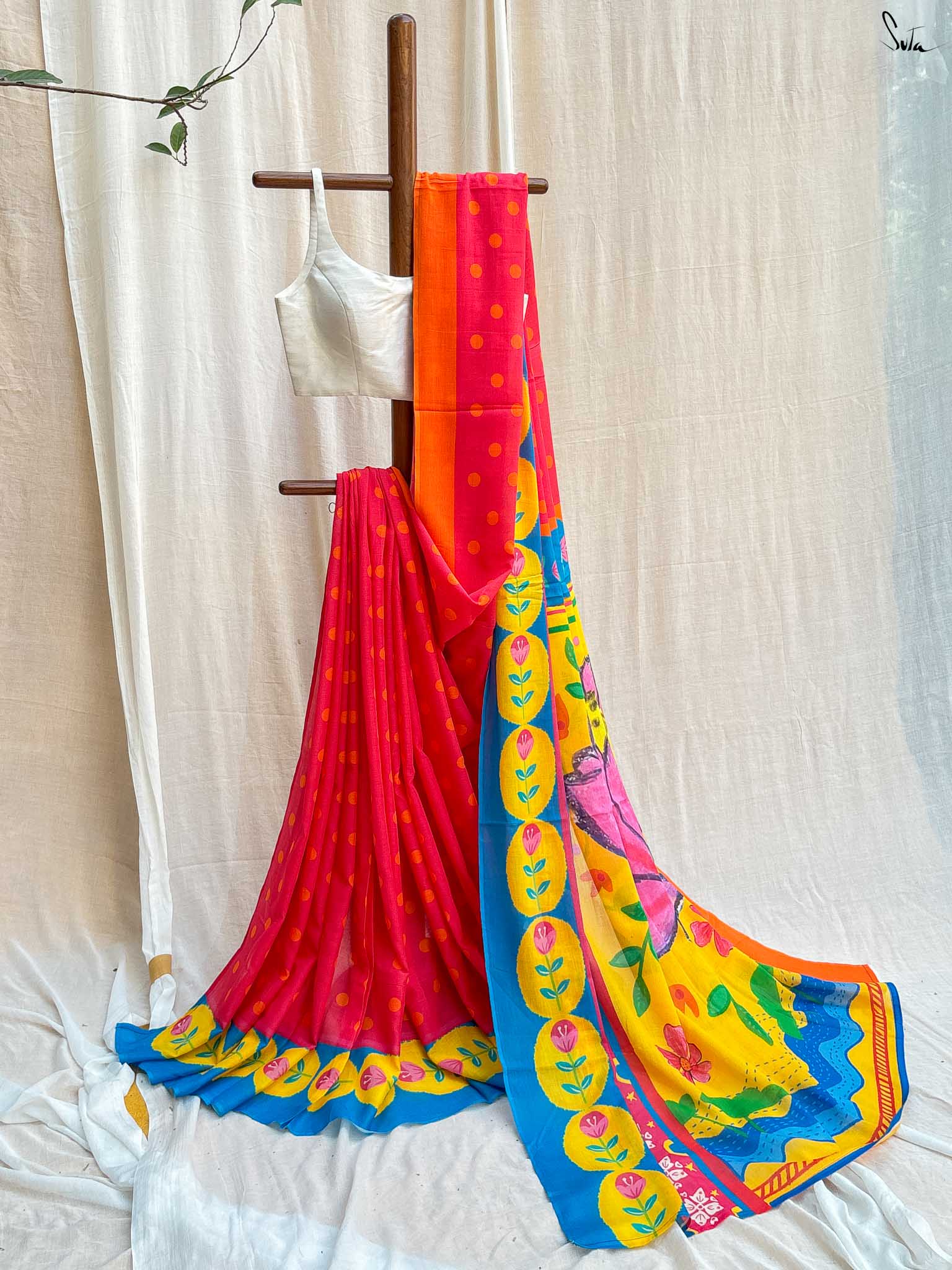 Note: Our mul sarees are slightly transparent, it’s the nature of the fabric and part of its soft, airy charm.