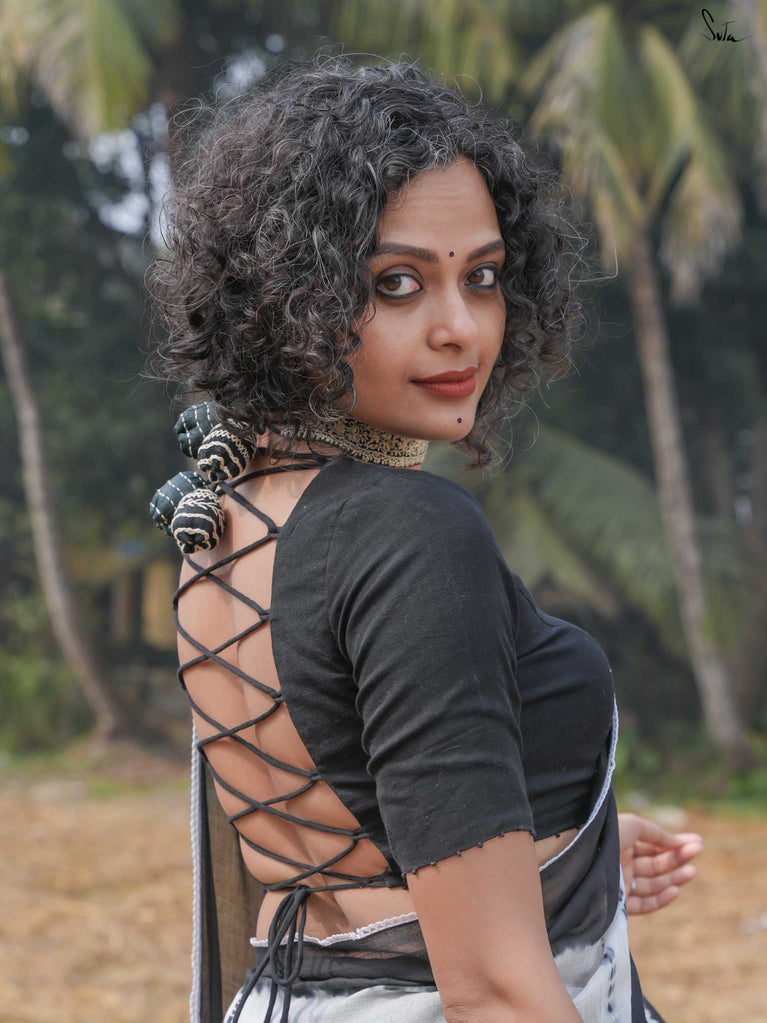 This saree is timeless elegance with a blooming twist. The soft black mul cotton drapes like a dream - lightweight, breathable, and endlessly flattering, making it a perfect go-anywhere, glow-everywhere piece.