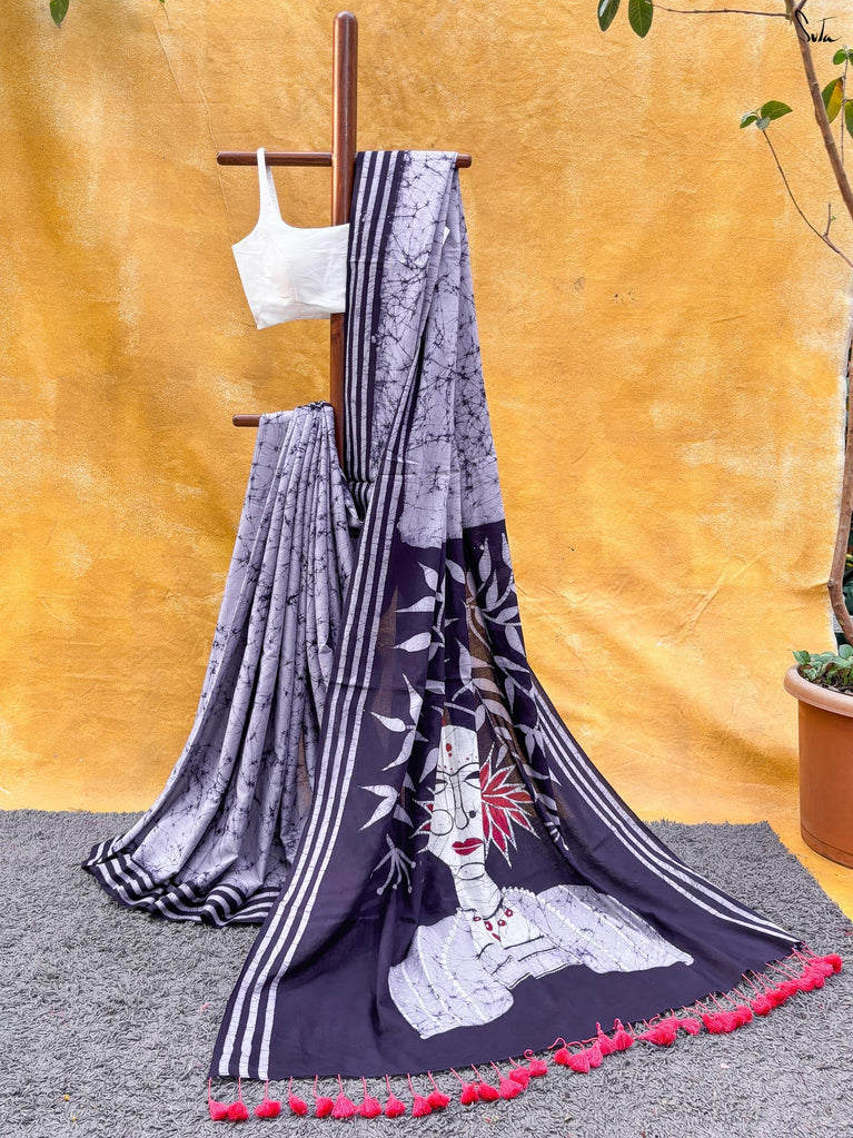 Cotton fabric dates back to some of the most ancient civilisations and it has a strong presence in the modern wardrobe as well. The softness and lightness of cotton combined with its strength and versatility makes it one of the most popular choices, especially for the Indian climate. We took this simple, elegant fabric and combined it with acrylic for that added sheen and voila! We love what we see and the saree falls so beautifully that it feels like second-skin!